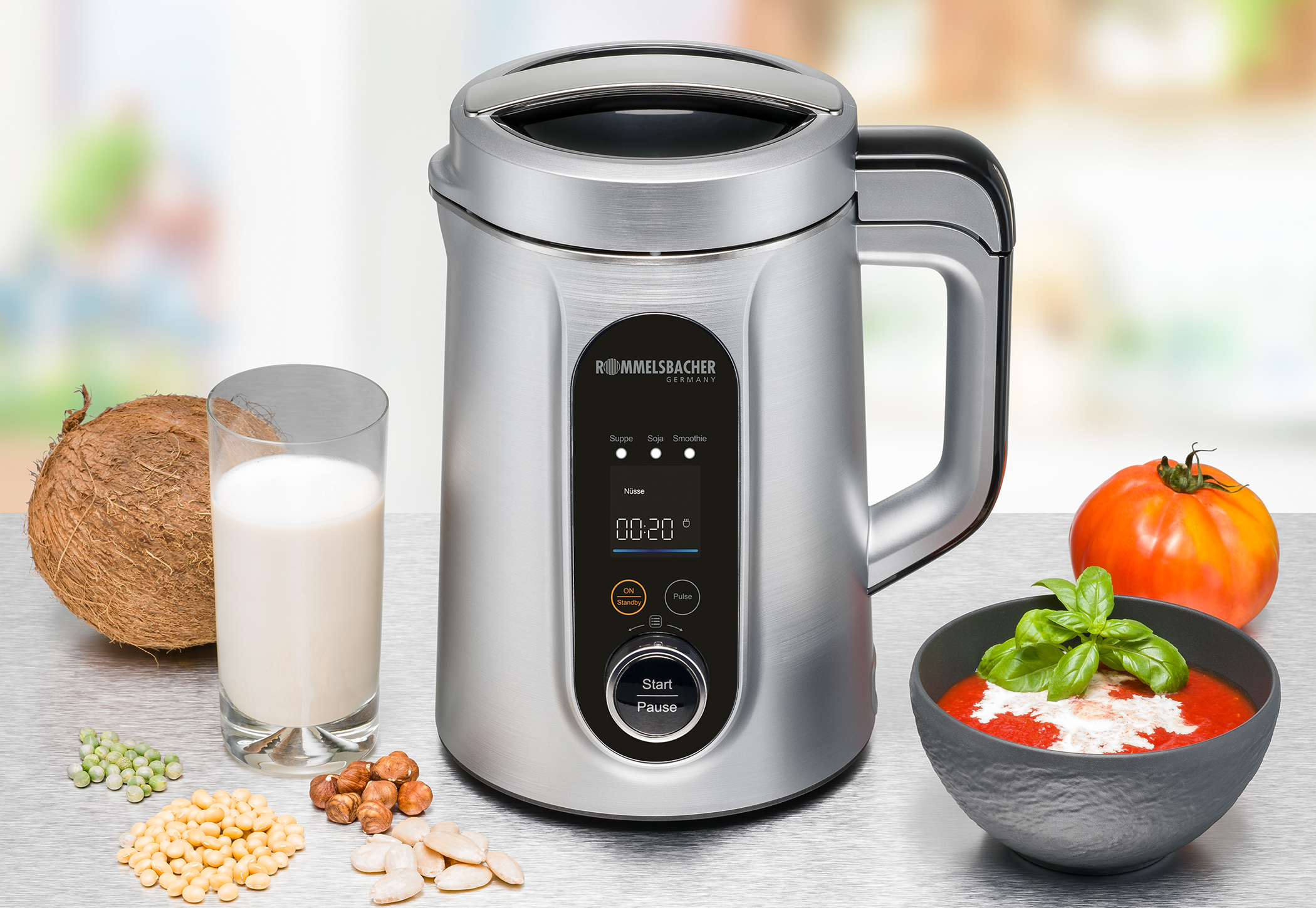 Der Rommelsbacher Suppen & Veggie Drink Bereiter Vera SVD bereitet Suppen und selbst gemachte Pflanzendrinks aus Soja, Mandeln, Hafer, Nüssen und mehr.
