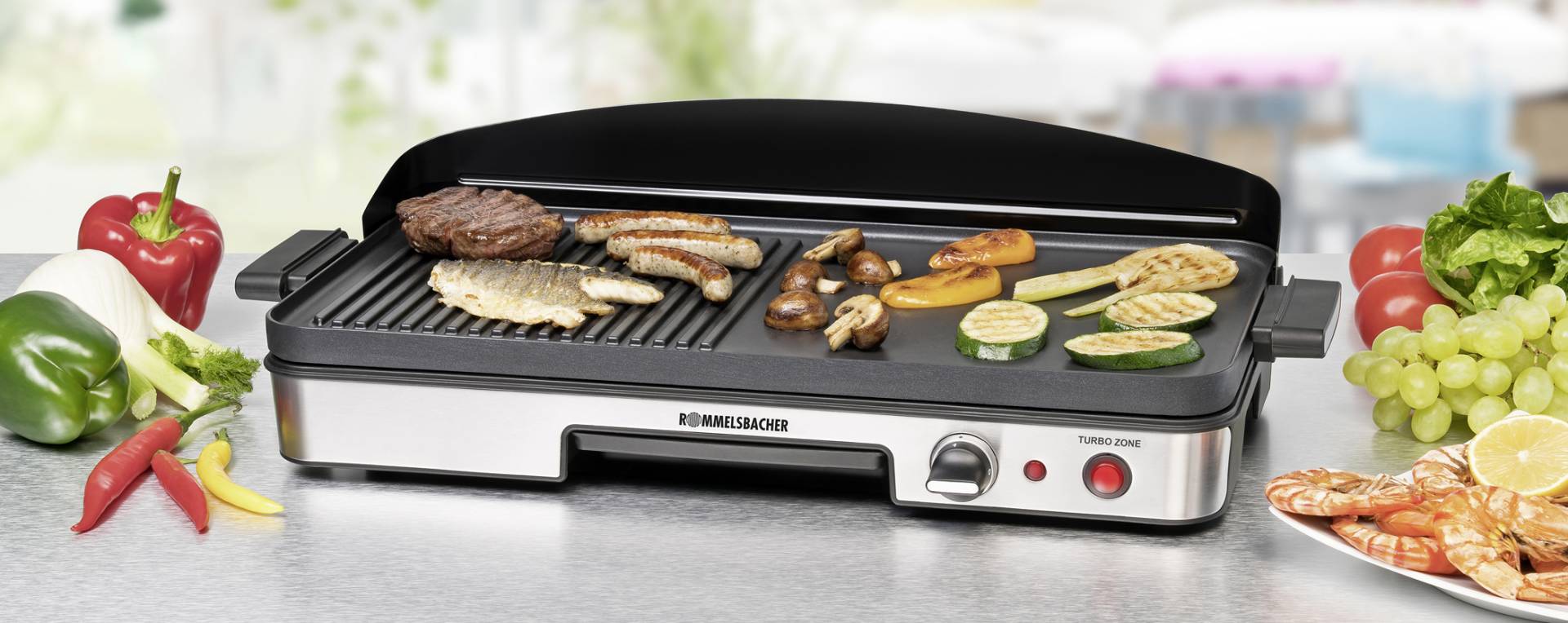 Der Rommelsbacher Tischgrill BBQ 2003 verfügt über eine massive, abnehmbare Alu-Druckguss-Grillplatte. Sie sorgt für die gleichmäßige Wärmeverteilung und schnelles Aufheizen.