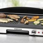 Die drei wechselbaren Platten sind aus hochwertigem Alu-Druckguss und bieten einen optimale Temperaturverteilung. Das flexible Scharnier passt die Back-/Grillfläche an das jeweilige Lebensmittel an.