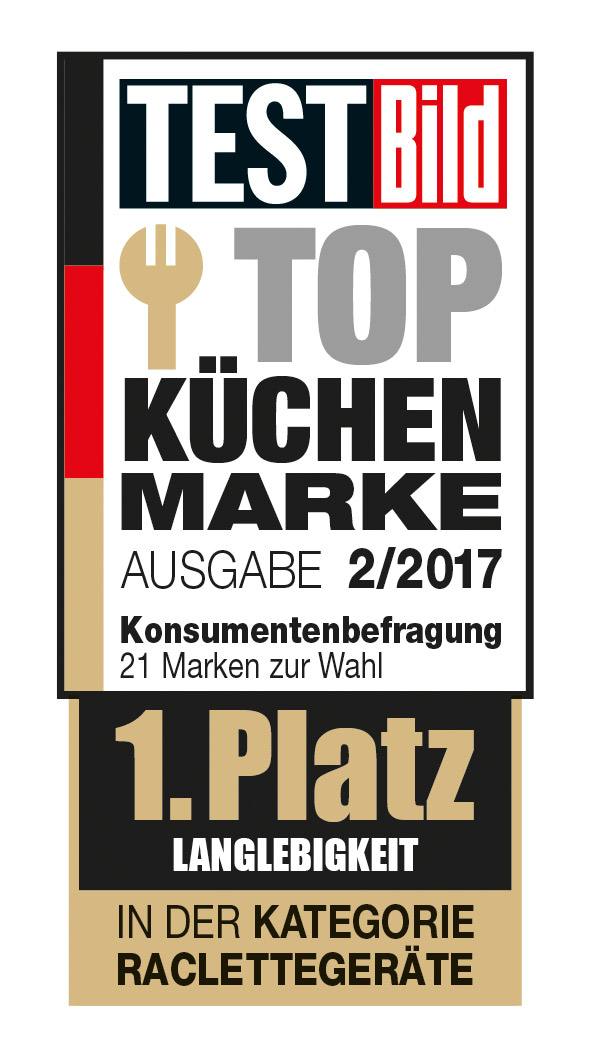 Rommelsbacher wurde jetzt in den Produktgruppen Vakuumierer und Raclettes mit dem Siegel „Top Küchen Marke 2017“ ausgezeichnet. Damit sich Konsumenten im Bereich Küche und Haushalt besser zurecht finden, führten die Redaktion von „Testbild“ und Statista eine Konsumentenbefragung durch und zeichneten die besten Produktmarken aus. Ausgewertet wurden über 90.000 Kundenbewertungen zu über 2.000 Marken in 84 Kategorien. Die Bewertungskriterien umfassten Qualität, Langlebigkeit, Funktionalität, Design und das Preis-Leistungs-Verhältnis.