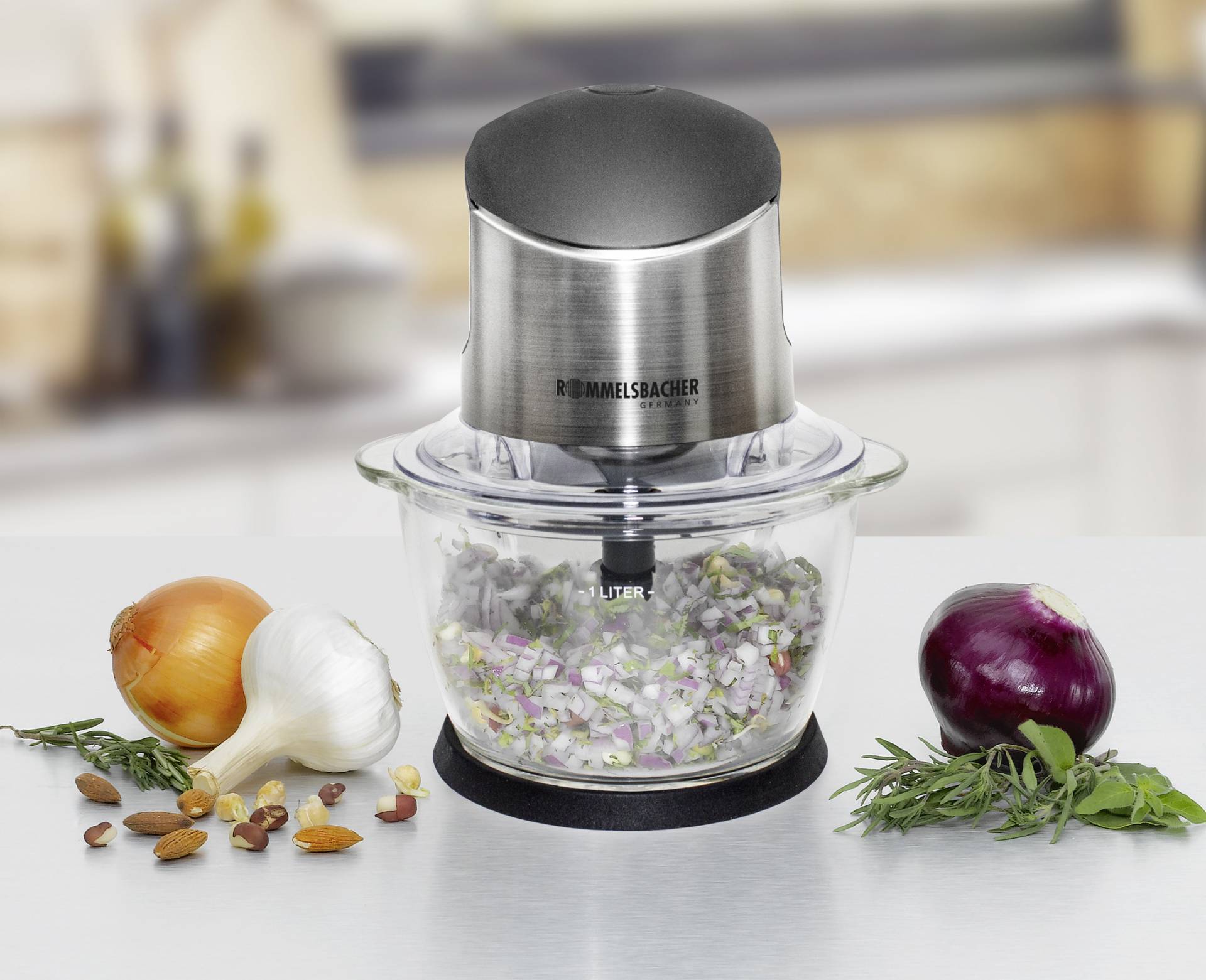 Der Rommelsbacher Zerkleinerer MZ 400 verarbeitet unter anderem Zwiebeln, Kräutern, Gemüse, Obst, Nüsse und Fleisch. Er eignet sich besonders zur Herstellung von Gewürzmischungen, leckerem Pesto und geschmackvollen Dips.