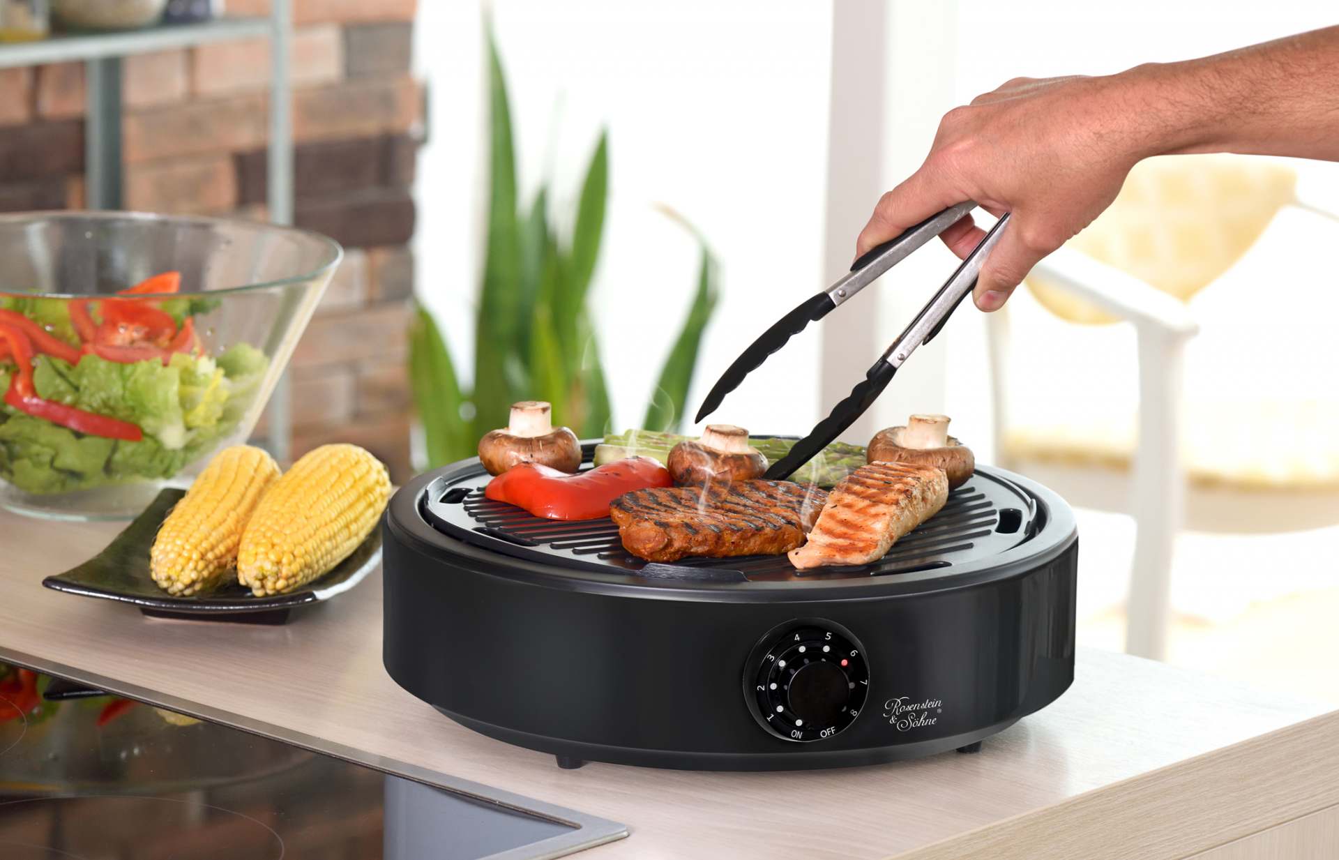 Wird im Handumdrehen zum Tischgrill: Einfach die antihaftbeschichtete Grillplatte aufsetzen. So gart man leckeres Fleisch, Fisch oder saftiges Gemüse direkt am Esstisch zu – sogar in der Wohnung.