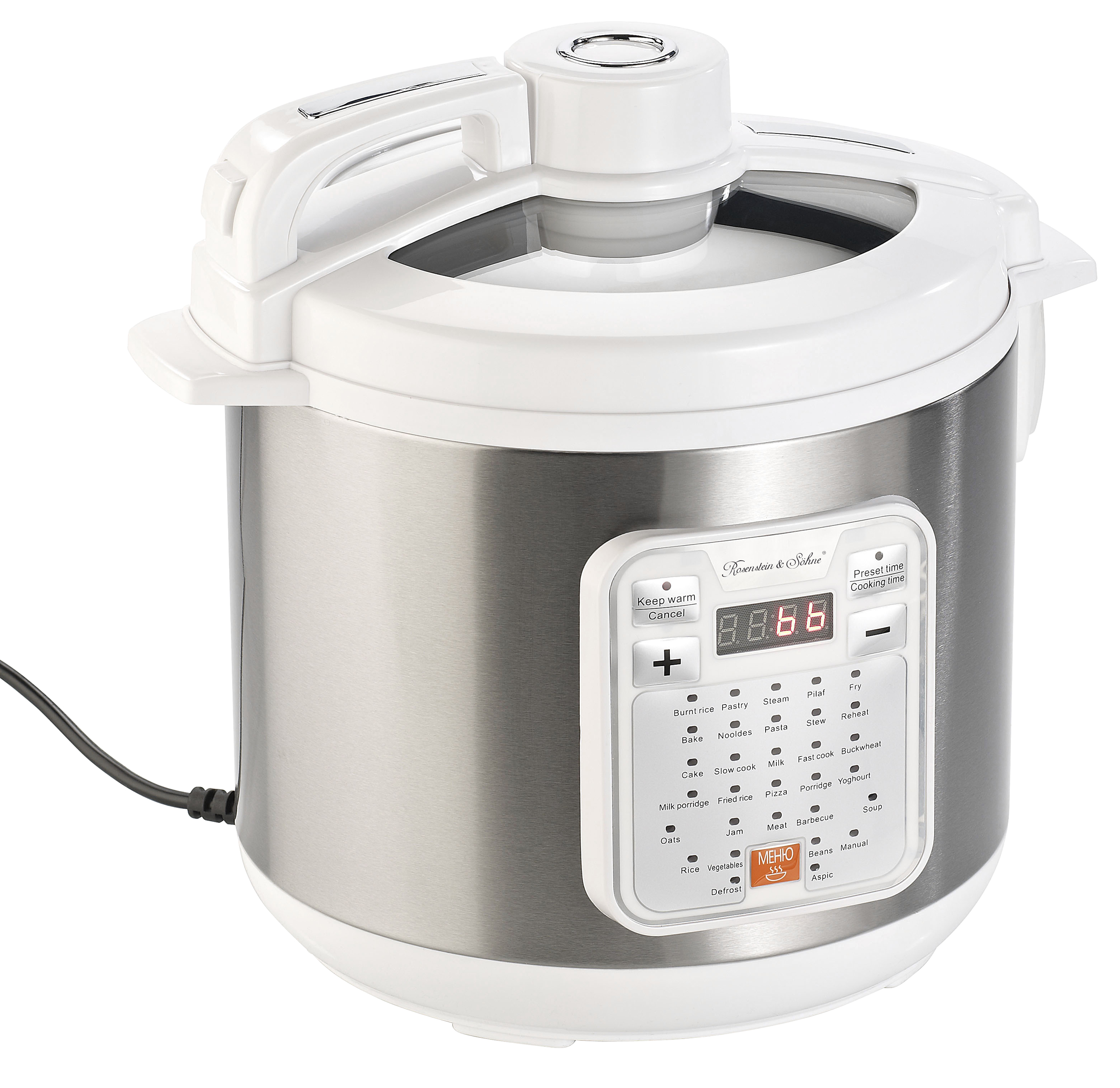 Mit dem Rosenstein & Söhne Multikocher hat man in der Küche wieder jede Menge Platz. Das praktische Multitalent von Rosenstein & Söhne mit 32 Funktionen vereint zahlreiche Küchengeräte in einem. Er ersetzt Fritteuse, Dampfgarer, Reiskocher, Backofen und vieles mehr. Mit dem Multikocher spart man so Platz, Zeit und bares Geld. Die 32 Programme erleichtern die Zubereitung von vielen leckeren, gesunden Gerichten. Saftiger Kuchen, krosse Ofenkartoffeln, schonend gedämpftes Gemüse, auf den Punkt gegarter Fisch oder selbstgemachter Joghurt – die Möglichkeiten sind schier unbegrenzt.