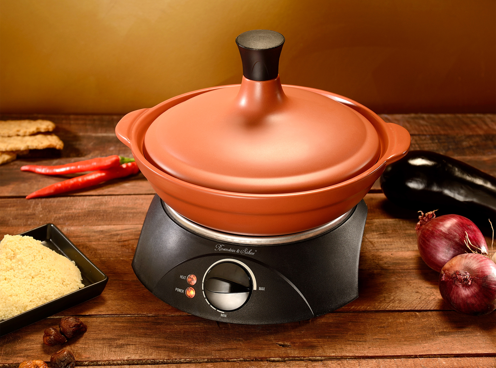- Elektrischer Schmortopf aus Terrakotta, glasiert