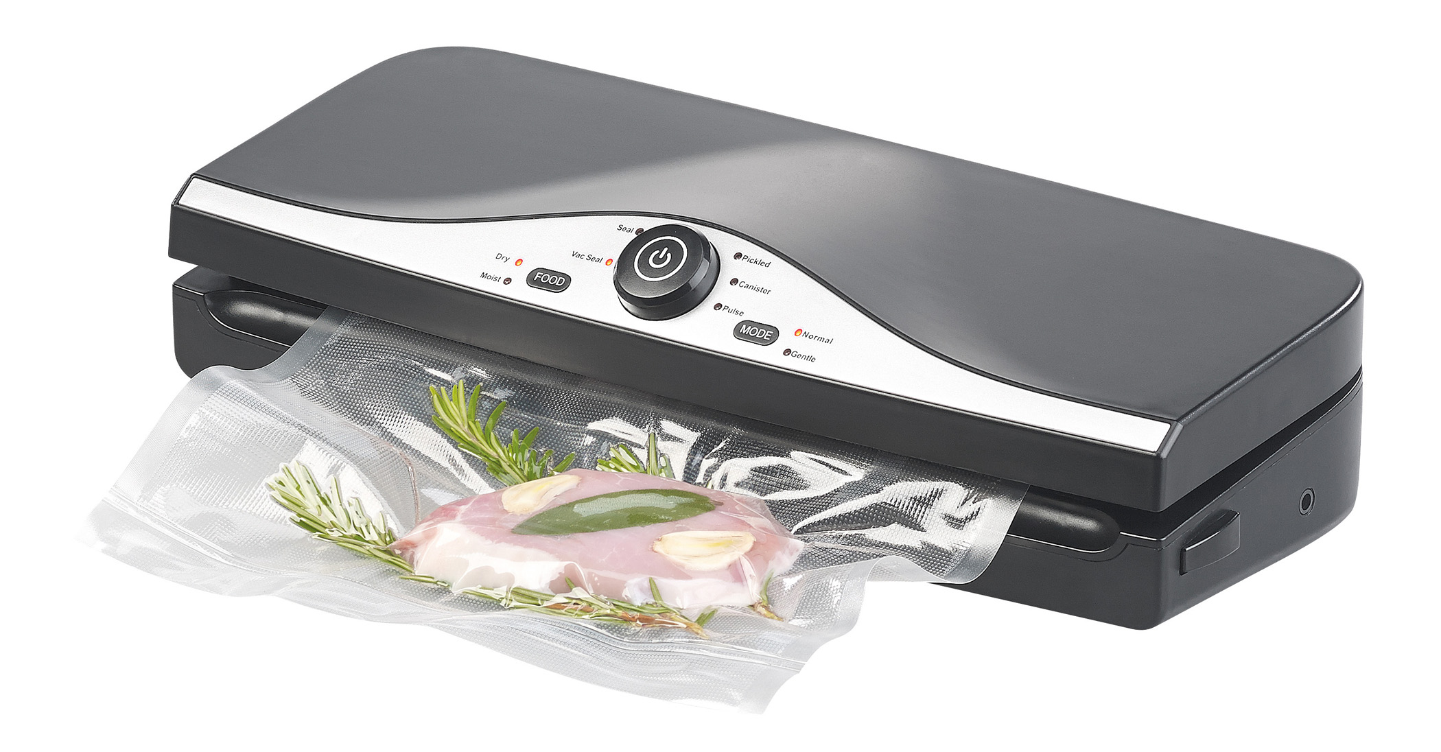Dank Druckregulierung vakuumiert man empfindliche Lebensmittel wie Brot und Beeren ganz behutsam. Fisch und andere feuchte Lebensmittel lassen sich gefahrlos mit dem Flüssigkeits-Abscheider vakuumieren. Falls mal Chipsreste übrig sind, schweißt man die Tüte einfach zu – auch ohne Vakuum!