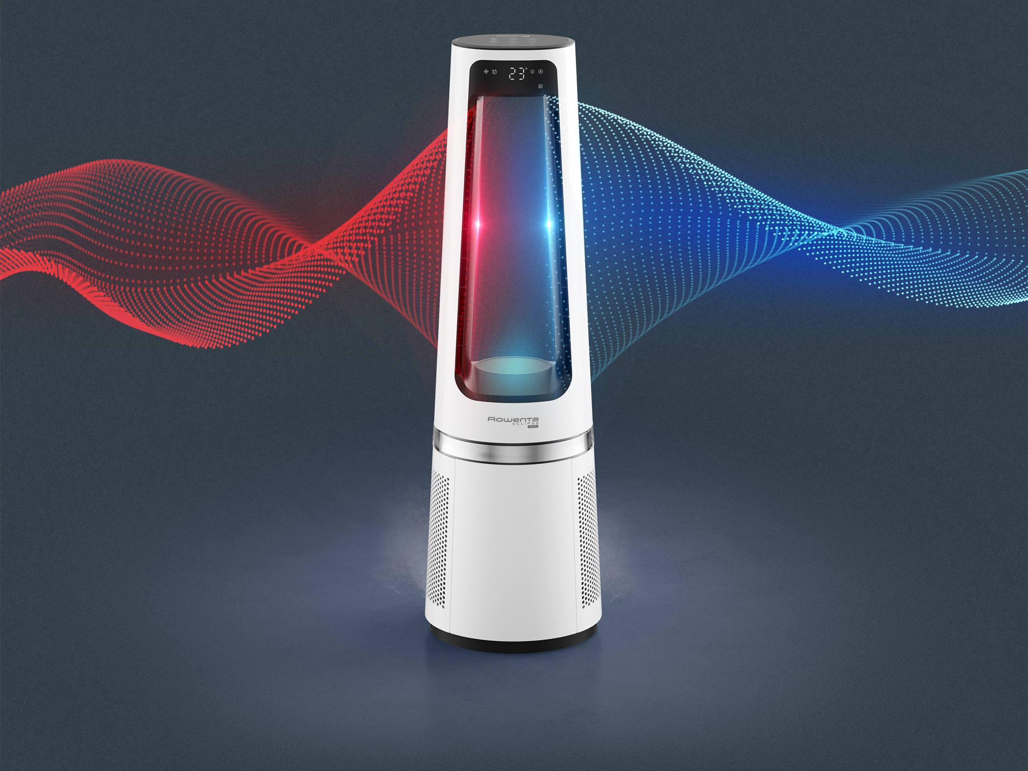 Der Rowenta Luftreiniger Eclipse 3in1 ist Ventilator, Luftreiniger und Heizgerät.