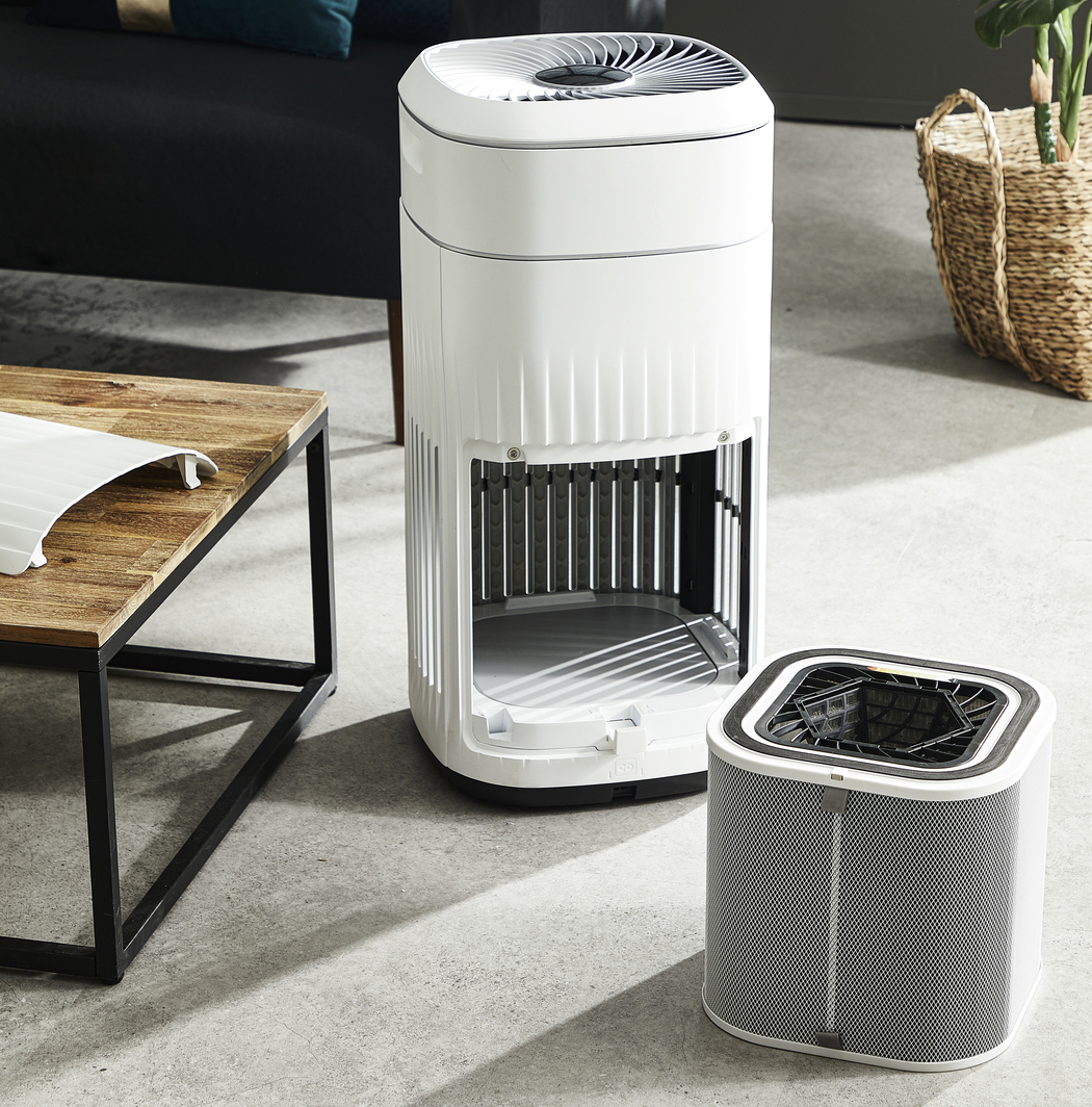 Dafür verfügt der Luftreiniger über ein 360°-Filtersystem, das aus vier Filterebenen besteht: Der Vorfilter fängt grobe Verschmutzungen wie Haare, Tierhaare und Staub ein. Der neue, verbesserte Aktivkohle-Filter entzieht der Luft Gase, stinkenden Rauch, lästige Gerüchte und flüchtige organische Verbindungen. Der leistungsstarke H14-Filter kann aufgrund der größeren Faltung noch mehr Kleinstpartikel bis zu einer Größe von 0,25 Mikrometer aufnehmen.