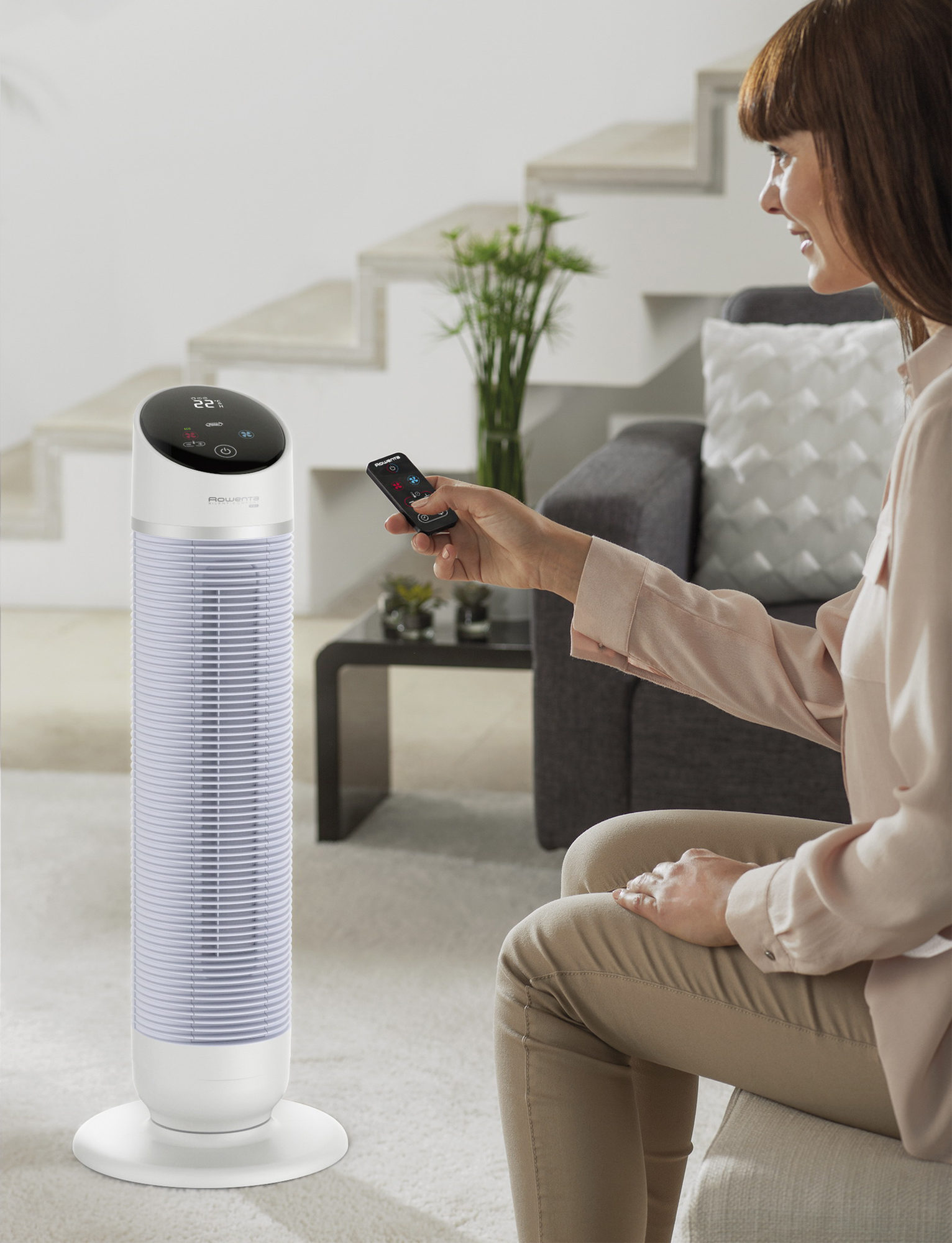 Der Rowenta Turmventilator Silent Comfort 3in1 ist Ventilator, Heizlüfter und Luftreiniger in einem Gerät.