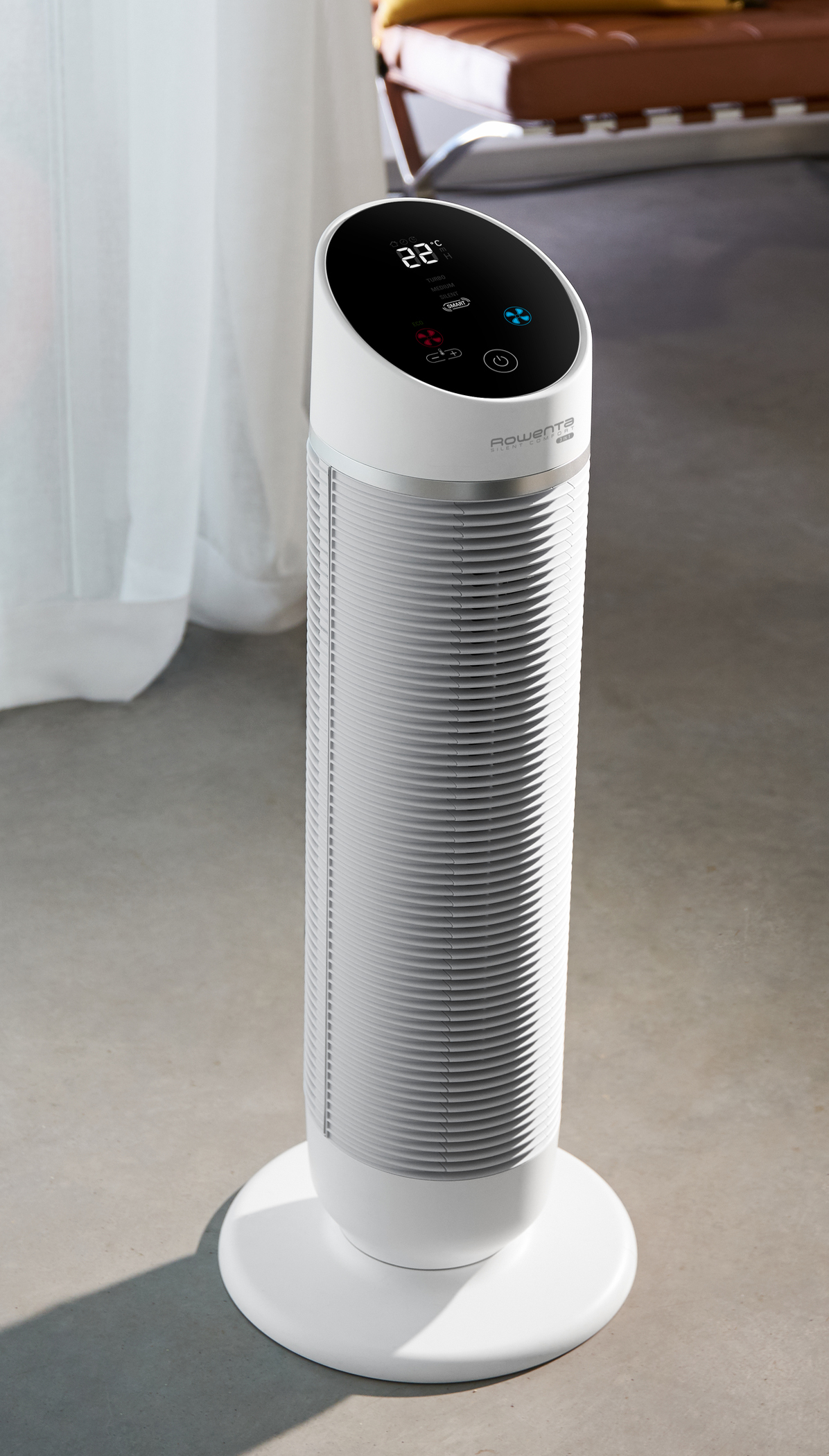 Der Rowenta Ventilator Silent Comfort 3 in 1 kühlt, heizt und filtert die Raumluft. Zusätzlichen Komfort bringt die beiliegende Fernbedienung. Über das elektronische Thermostat können Nutzer ihre Wunschtemperatur direkt individuell anpassen. Im Smart Modus erfolgt die Temperaturanpassung dagegen automatisch.