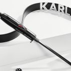 Die Serie kennzeichnet das edle schwarze Design mit einem minimalistischen roten Touch. Das ikonische Lagerfeld-Kameo-Muster rundet das gesamte Design ab.