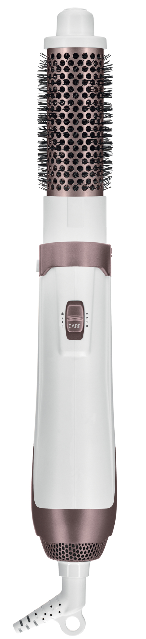 Die Rowenta Warmluftbürste Premium Care ist mit fünf unterschiedlichen Aufsätze ausgestattet und formt so verschiedenste Haar-Stylings.