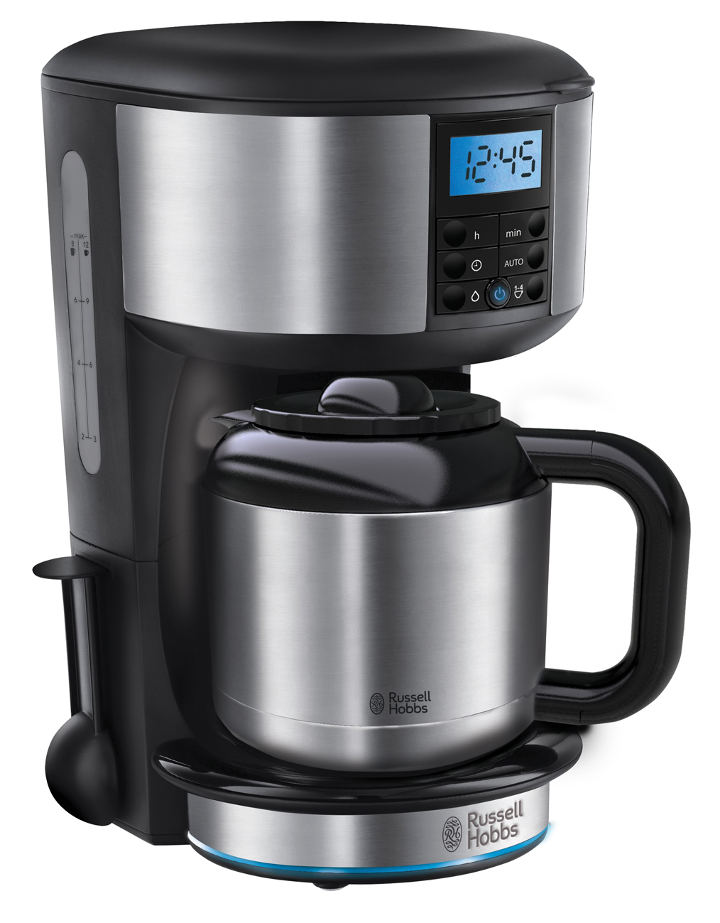 Die Russell Hobbs Buckingham Kaffeemaschine ist mit Glaskanne zum Preis von 59,99 € und mit Thermokanne zum Preis von 79,99 € erhältlich (Preise UVP).