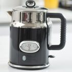 Die Russell Hobbs Kaffeemaschine Retro Classic Noir ist mit Glas- oder Thermokanne erhältlich. Beide Geräte sind Teil der Frühstücksserie Retro Classic Noir. Zu ihr gehören weiterhin ein Wasserkocher und ein Toaster. Die Serie ist im Stil der 50erJahre, ohne jedoch auf moderne Technik zu verzichten.