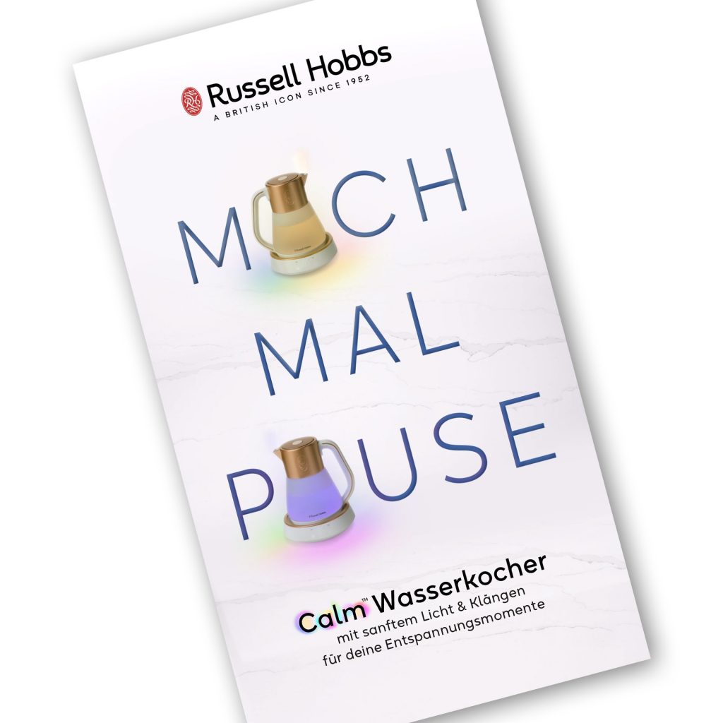 Mit dem Calm Wasserkocher präsentiert Russell Hobbs eine neue Kampagne auf dem deutschen Markt. Der britische Hersteller setzt dabei auf eine Kombination aus realen und digitalen Elementen. Entwickelt wurde die international eingesetzte Kampagne von der Agentur Ponderosa (Leeds) in Zusammenarbeit mit der Produktionsfirma Tungsten Media.