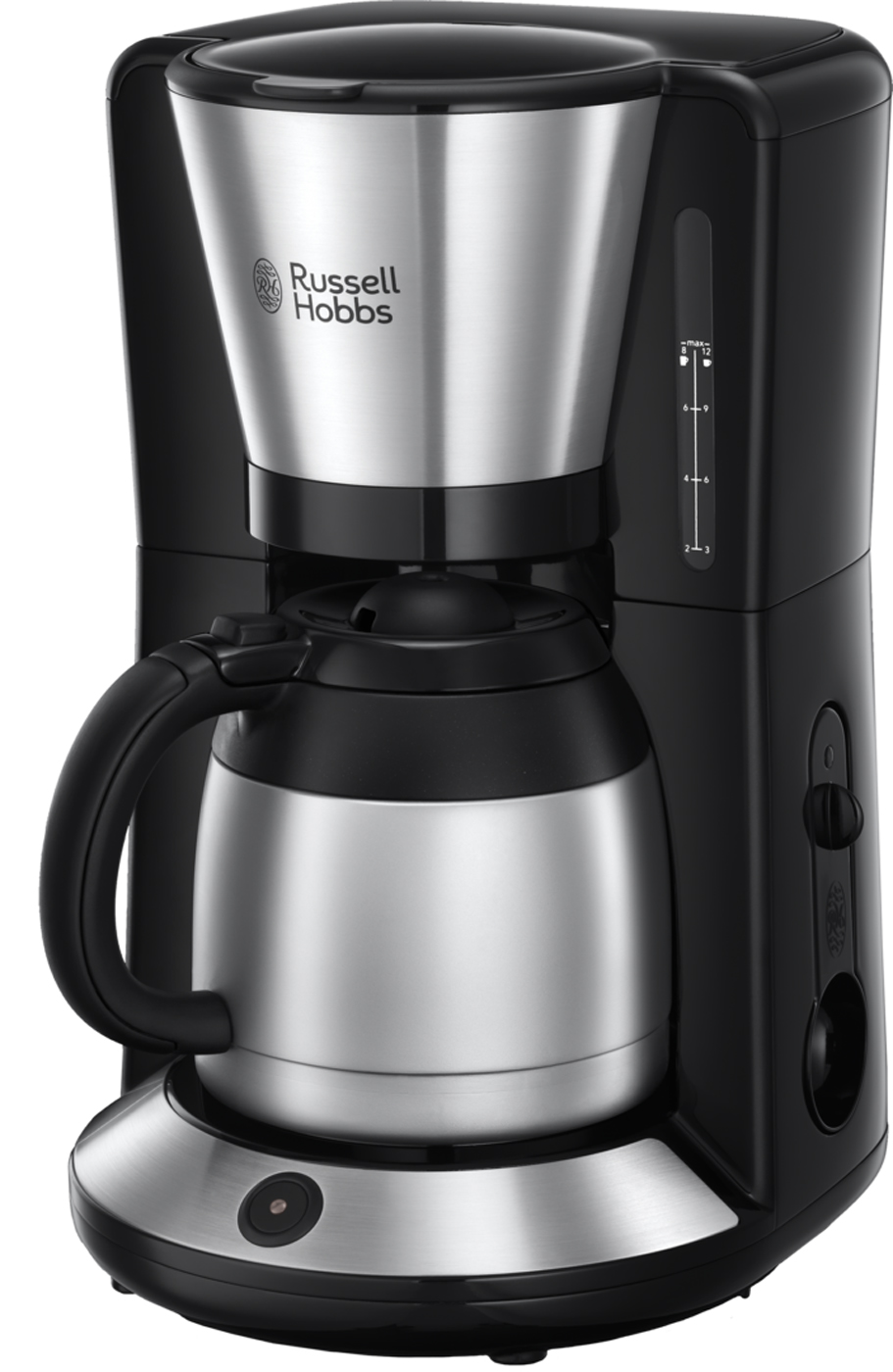 Die Russell Hobbs Thermo-Kaffeemaschine Adventure ist eine Filterkaffeemaschine mit hochwertiger Thermokanne. Ihr Fassungsvermögen beträgt 1,0 Liter, bzw. bis zu acht Tassen.