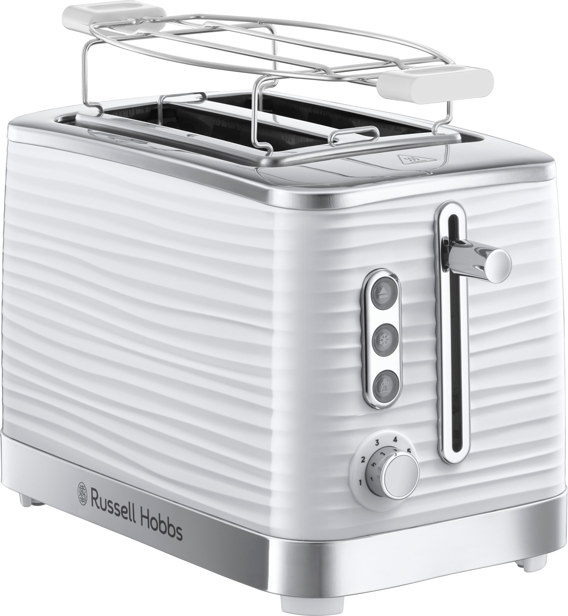 Der Russell Hobbs Toaster Inspire White verfügt über sechs wählbare Bräunungsstufen. Die praktische „Lift and Look“-Funktion erlaubt ein Anschauen des Toastes während des Röstens, ohne den Vorgang zu unterbrechen.