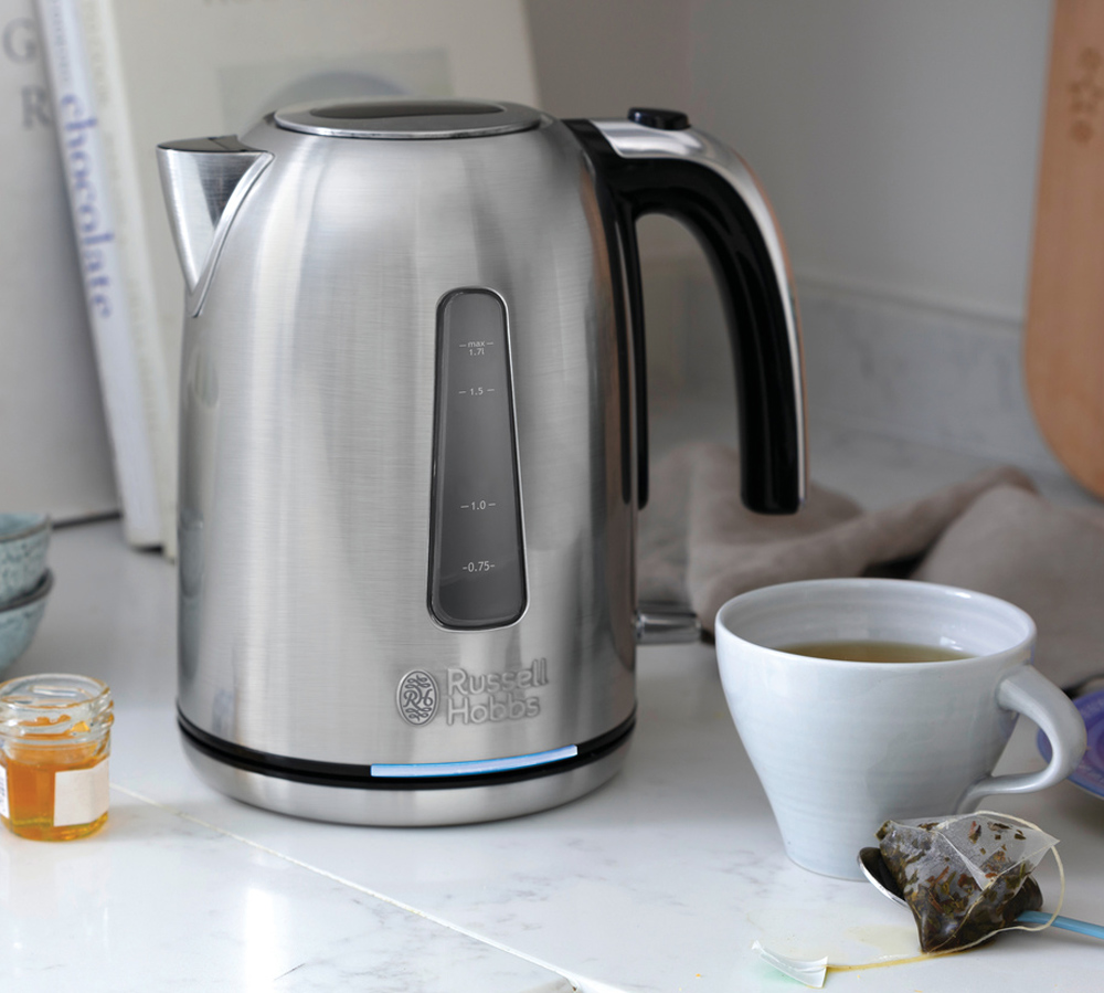 Der Russell Hobbs Wasserkocher Velocity hat ein Fassungsvermögen von 1,7 Liter und ist mit einer innovativen Ausgustülle ausgestattet.