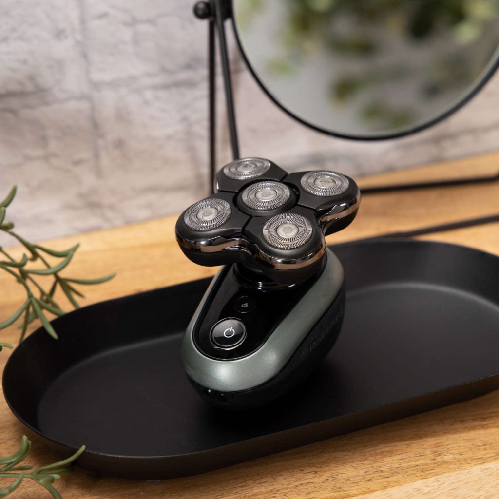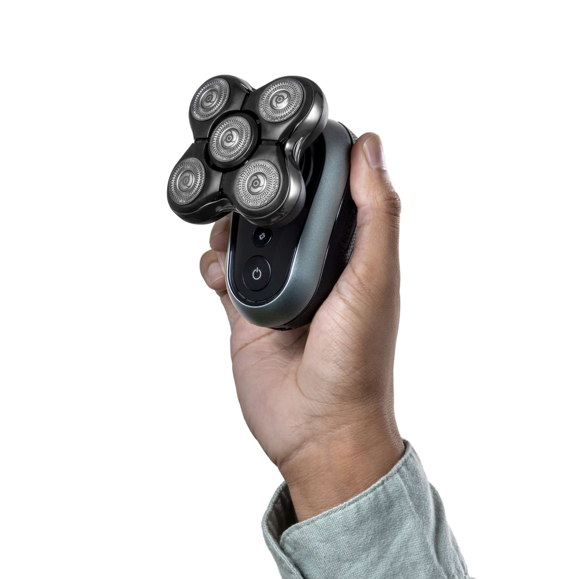 Ein markanter Haarschnitt, wie der Bald Head, verleiht nicht nur jenen, die unter lichtem Haar leiden, neues Selbstbewusstsein. Die Glatze ist vielmehr Ausdruck von Stärke und unter Männer und Frauen gleichermaßen beliebt. Doch wer den ästhetischen Look tragen möchte, benötigt einen zuverlässigen Rasierer, der Leistung und Komfort in sich vereint und gleichzeitig einfach und schnell zu bedienen ist. Der ULTIMATE SERIES Glatzenrasierer RX7 verfügt über 5 Scherköpfe, die sich dank ihrer Beweglichkeit den Konturen des Kopfes anpassen und so mühelos über die Haut gleiten, sodass die komplette Rasur in weniger als 2 Minuten erledigt ist*.