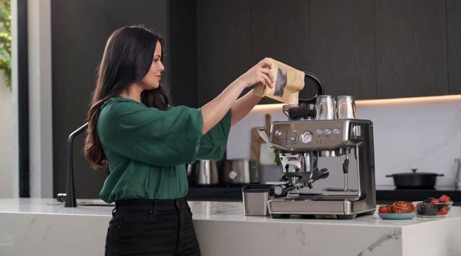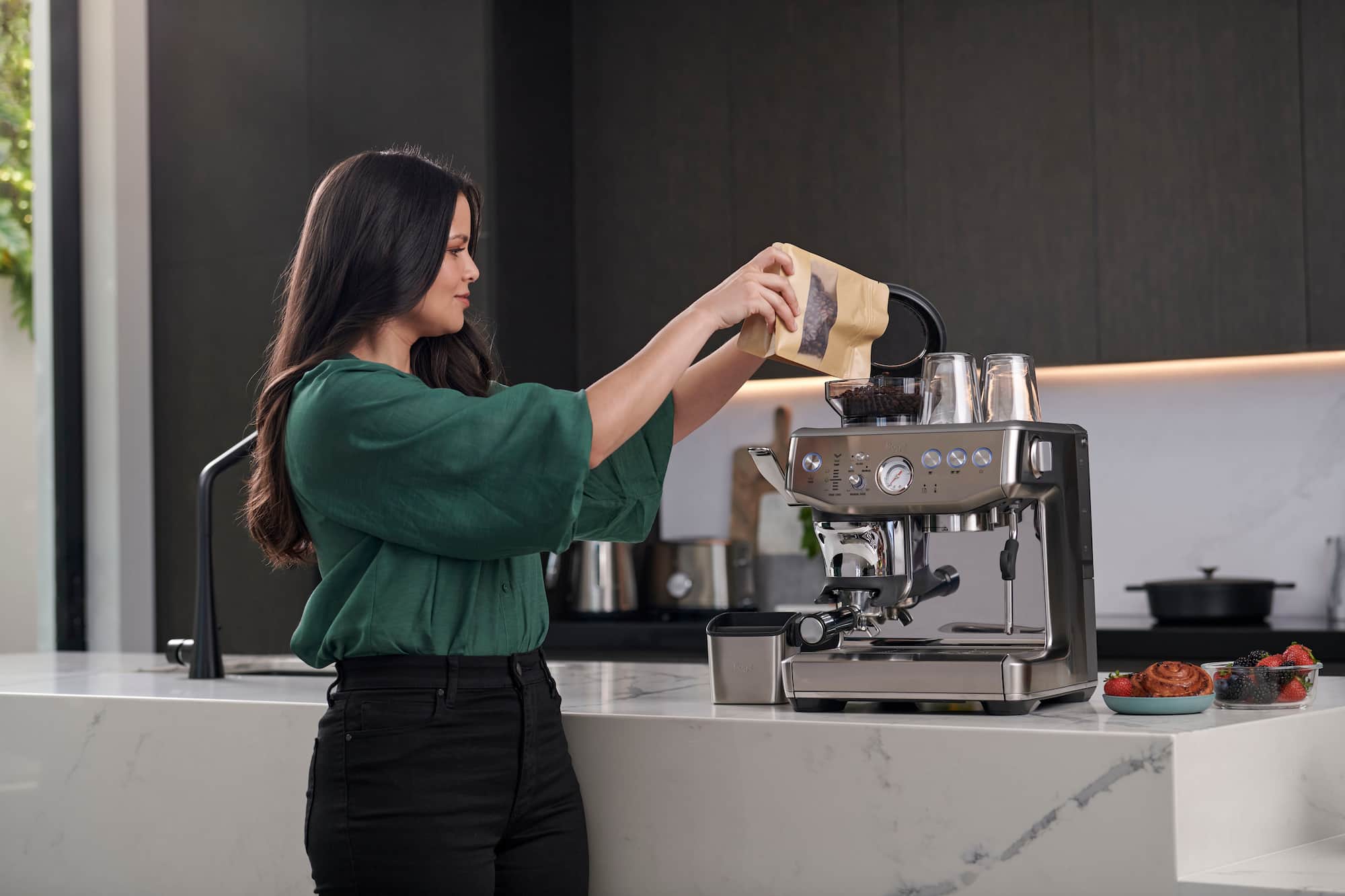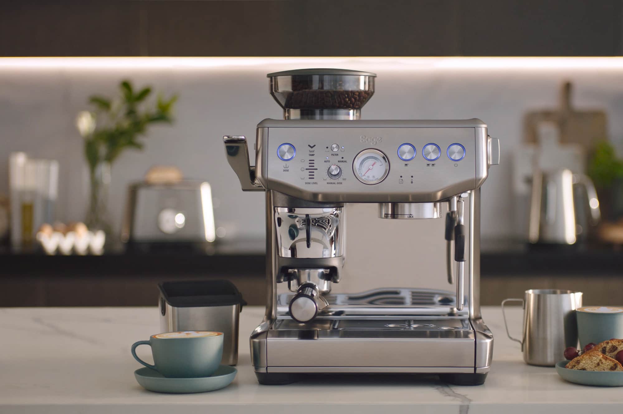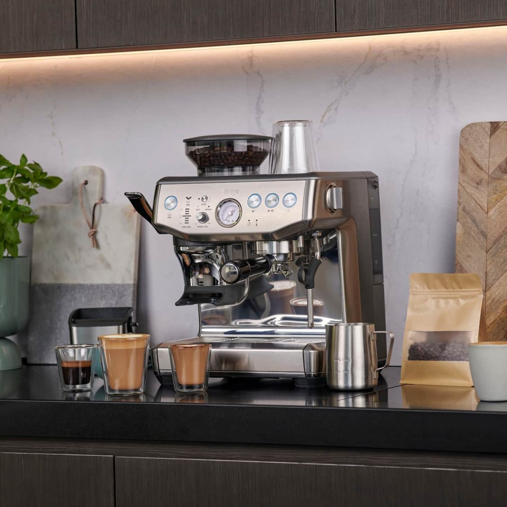 Wer auf der Suche nach einer Siebträgermaschine ist, die den Einstieg in die Welt der Homa Barista erleichtert, trifft mit der Sage Barista Express Impress die perfekte Wahl. Das neueste Modell überzeugt nämlich mit einem intelligenten Dosiersystem sowie einem Druckhebel für unterstütztes Tampern – optimal für jeden Barista-Neuling. Dank kompakter Größe und integrierter Mühle ist die edle und innovative Siebträgermaschine platzsparend und findet so auch in kleinen Küchen ein schönes Plätzchen.