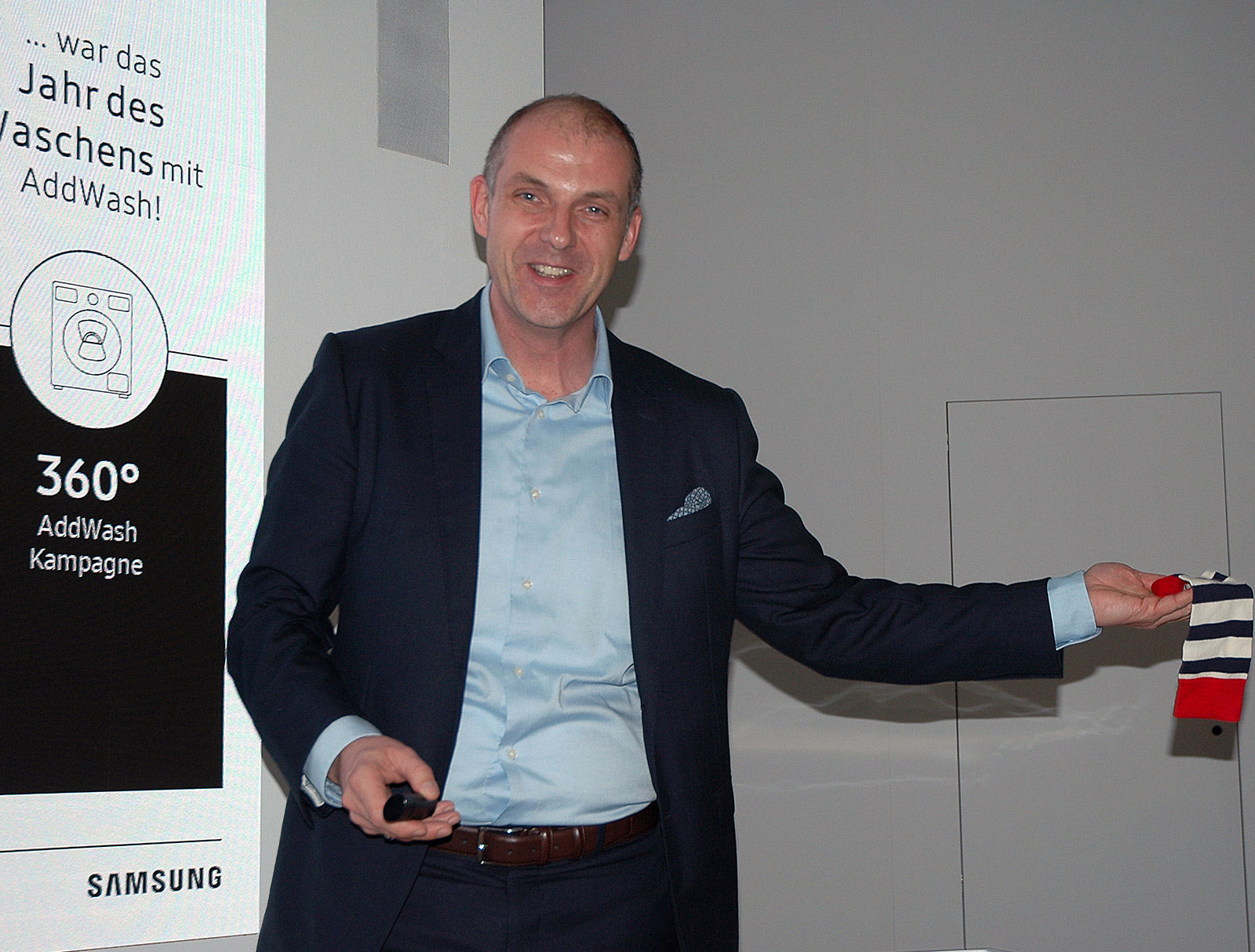 Samsung setzt klar auf den Fachhandel. „Wir können nur in enger Zusammenarbeit mit dem Fachhandel erfolgreich sein“, bekräftigt Zeeh. „Im letzten Jahr haben wir 932 Händler mit unseren Produkten ausstatten können, – 2017 sollen weitere 300 hinzukommen – davon zirka 90 Prozent mit AddWash. Ein großer Erfolg, denn vorher waren wir mit Waschmaschinen bei den Händlern nicht vertreten.“ Ein Schlüssel hierzu ist zweifellos die Ausweitung der Vertriebsaktivitäten.