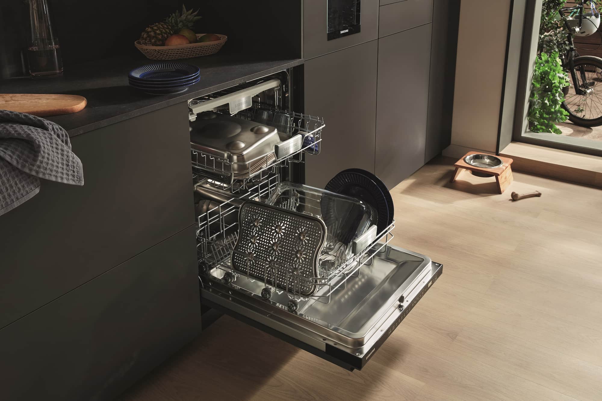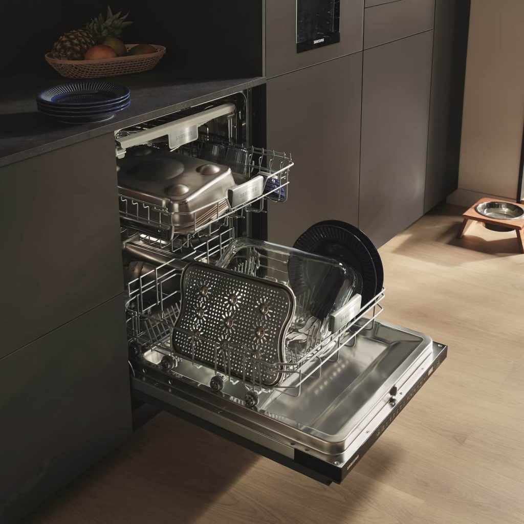 Nach jeder gemeinsamen Mahlzeit steht das Aufräumen. Mit einem smarten Geschirrspüler ist das schnell und einfach erledigt. Samsung präsentierte auf der area30 das Premium-Flaggschiff DW8700: Der Geschirrspüler erreicht Energieeffizienzklasse A-10% und bietet Platz für 14 Maßgedecke. Zusätzliche Funktionen wie automatische Türöffnung und Infolicht auf dem Boden sowie seine inneren Werte – die Inverter-Pumpe und WaterJet-Clean-Technologie sowie Innenbeleuchtung und leise 41dB(A) Arbeitsgeräusch bei lediglich 8 Liter Wasserverbrauch – sind Argumente, die auch anspruchsvolle Kunden überzeugen.