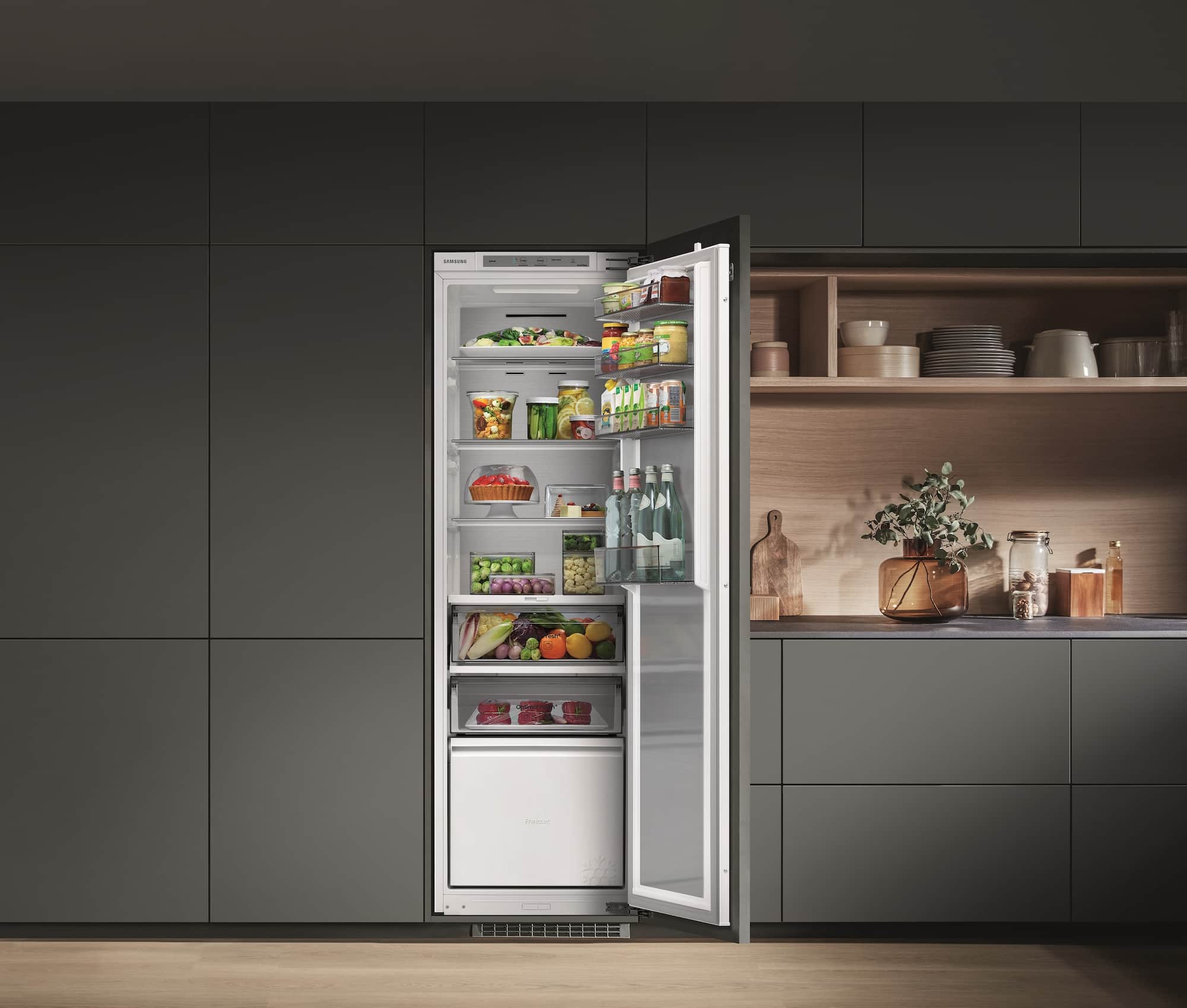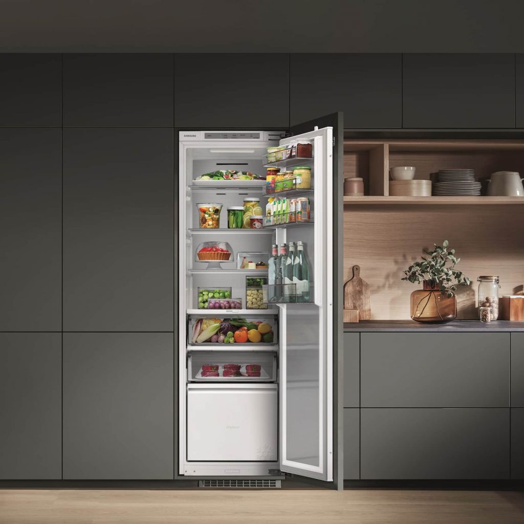 Kaum in der Küche, geht morgens der erste Griff häufig an die Kühlschranktür, die Milch für den Kaffee, Marmelade fürs Frühstücksbrot oder die TK-Früchte für den Smoothie – im Samsung Einbaugerät ist alles frisch an Ort und Stelle. Auf der area30 stellte Samsung Neuzugänge im Sortiment der WiFi-fähigen Vollraumkühl- und Gefriergeräte vor: Diese sind zukünftig auch mit 177 Zentimetern Nischenhöhe und 264 Litern Volumen erhältlich.