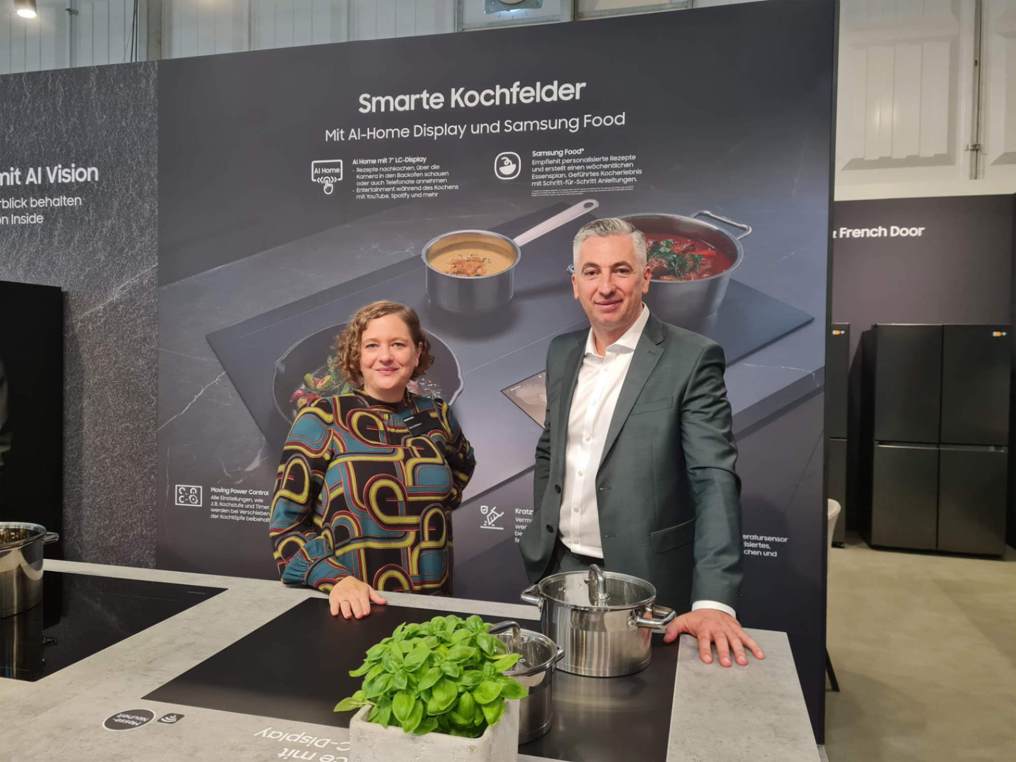 Auf der area30: Diana Diefenbach (Senior Manager Technical Product Management and Communication) und Nedzad Gutic (Vice President Home Appliances). Fotos: M. Machan, Samsung