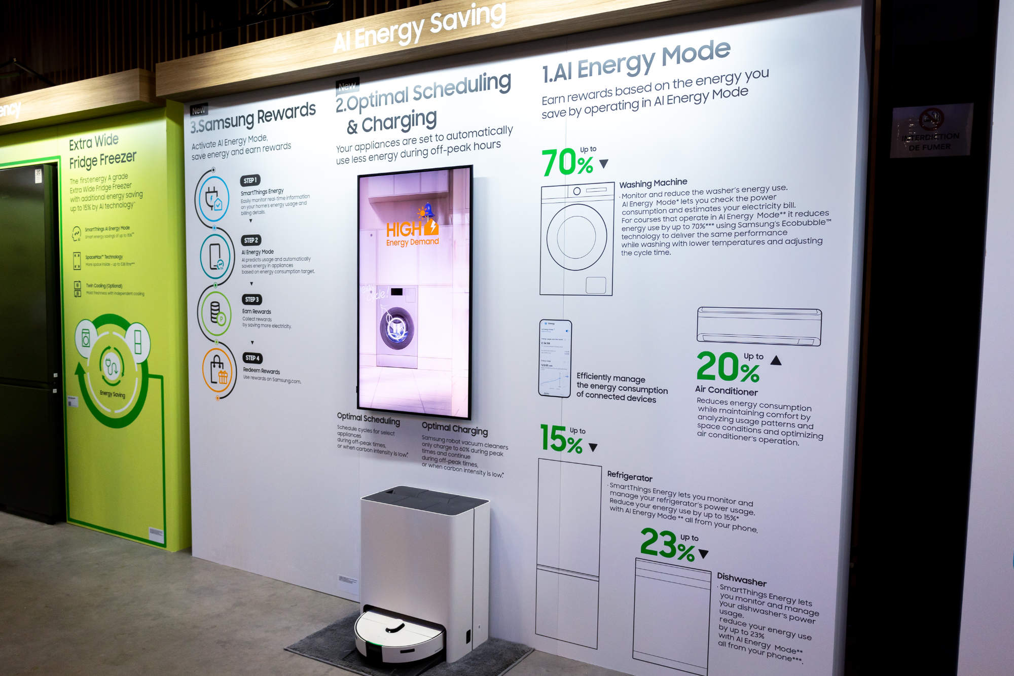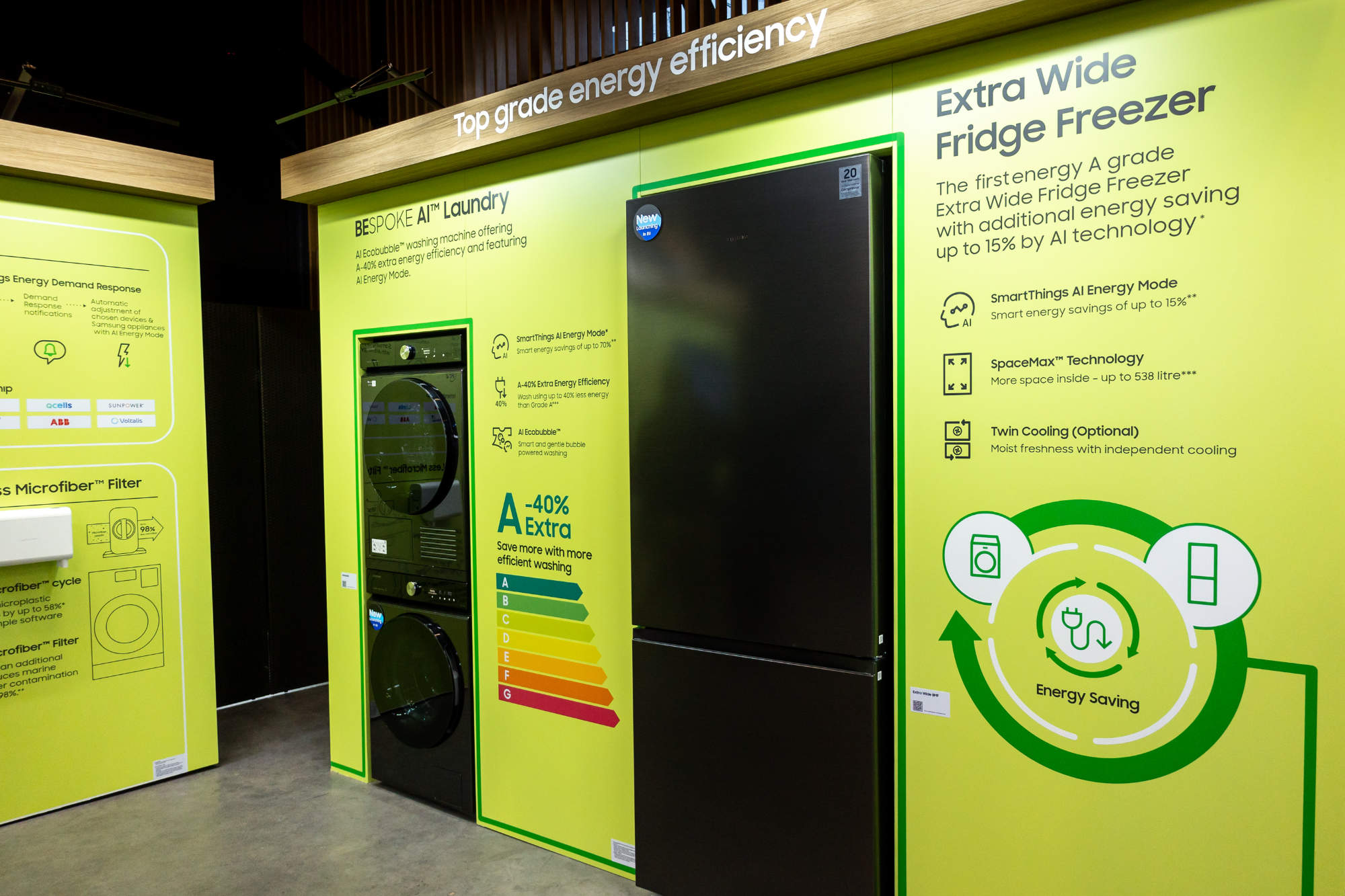 Energieeffizienz ist und bleibt ein wichtiges Kaufkriterium. Samsung präsentierte in Paris neue Waschen- und Kühlgeräte in der Energieeffizienzklasse (EEK) A oder besser. Der 75 cm breite RB6000 hat dank seines AI Inverter Kompressors als erste Kühlgefrierkombination in Extrabreite die EEK A erzielt. Das erweiterte Waschmaschinen Line-up umfasst verschiedene Modelle, die energieeffizienter arbeiten, als es der Grenzwert der EEK A vorsieht: Von A-10%, A-20% bis zu A-40%.