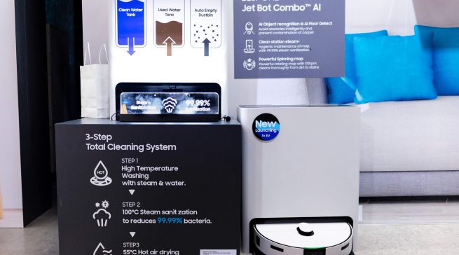 Zudem wird es den Nutzerinnen und Nutzern möglich sein, eingehende Anrufe über AI Home auf ihrem Smartphone anzunehmen, ohne ihren Putz- oder Kochvorgang unterbrechen zu müssen. Zum Beispiel kann der Bespoke Jet AI anzeigen, wenn ein Anruf eingeht und es Nutzern dann ermöglichen, diesen direkt am Smartphone entgegenzunehmen. Zusätzlich kann AI Home für Unterhaltung sorgen: Nutzer können sich mit ihrer Lieblings-Putz-Playlist in Stimmung bringen, Videos ansehen oder beim Kochen Rezepte nachschlagen.