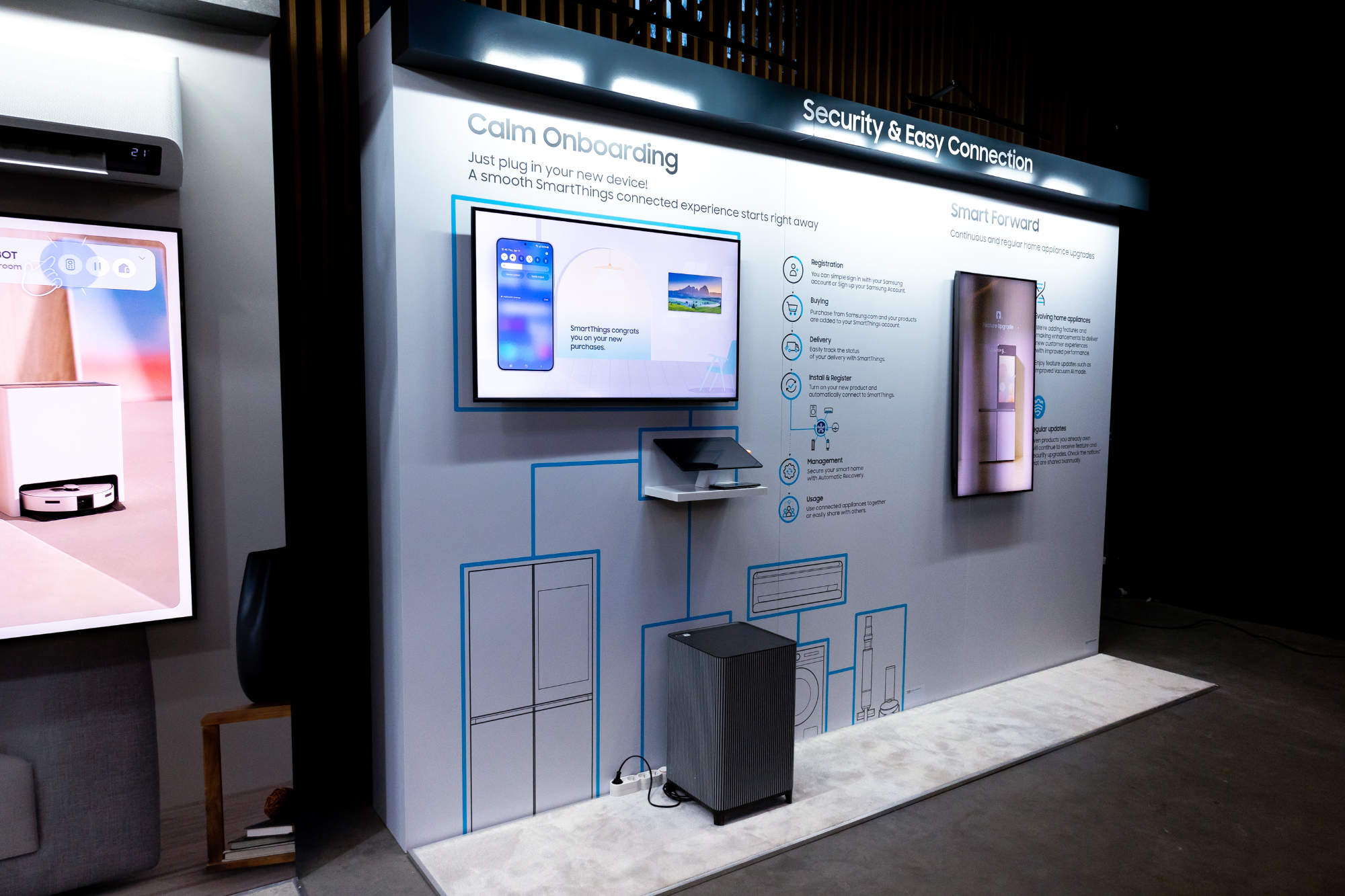 Mit dem Motto „AI for All“ hat Samsung es sich zum Ziel gesetzt, einen leichten Einstieg in das vernetzte, AI-unterstützte Zuhause zu ermöglichen. Das umfasst auch die Navigation im Smart Home und damit auch das Überfrachten der Nutzer mit diversen Funktionen, Einrichtungen und Logins. Auf dem Bespoke AI Event stellte Samsung deshalb erstmals „Calm Onboarding4“ vor, was den Nutzern erleichtern soll, sich die Möglichkeiten des vernetzten Alltags zu erschließen.