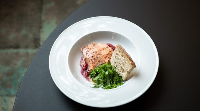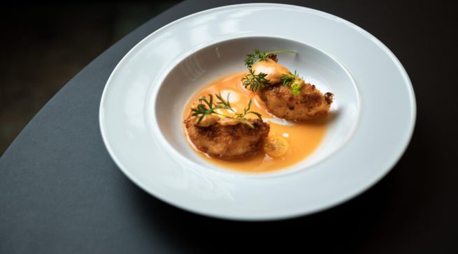 Nicht nur die Haute Cuisine, auch die Technik der Zubereitung von Speisen bei konstant niedrigen Temperaturen unter Vakuum wurden von unseren französischen Nachbarn erfunden. Diese Art der Zubereitung eignet sich vor allem für Fleisch und Fisch, da die Veränderungen auf molekularer Ebene durch die geringen Temperaturen von in der Regel unter 100° C besonders langsam verlaufen. So lässt sich das Ergebnis ziemlich exakt steuern und auch Anfängern kann so ein perfekt gegarter Miso Seehecht mit gelbem Rettich und Miso Mayonnaise gelingen. „Sous-Vide-Garen eignet sich perfekt, wenn man Aromen miteinander verschmelzen will: Im Beutel kombiniert sich alles ganz langsam – bei korrekter Temperatur und Garzeit – was dazu führt, dass wir eine gelingsichere Geschmacksexplosion erzeugen“, erklärt Tim Raue.