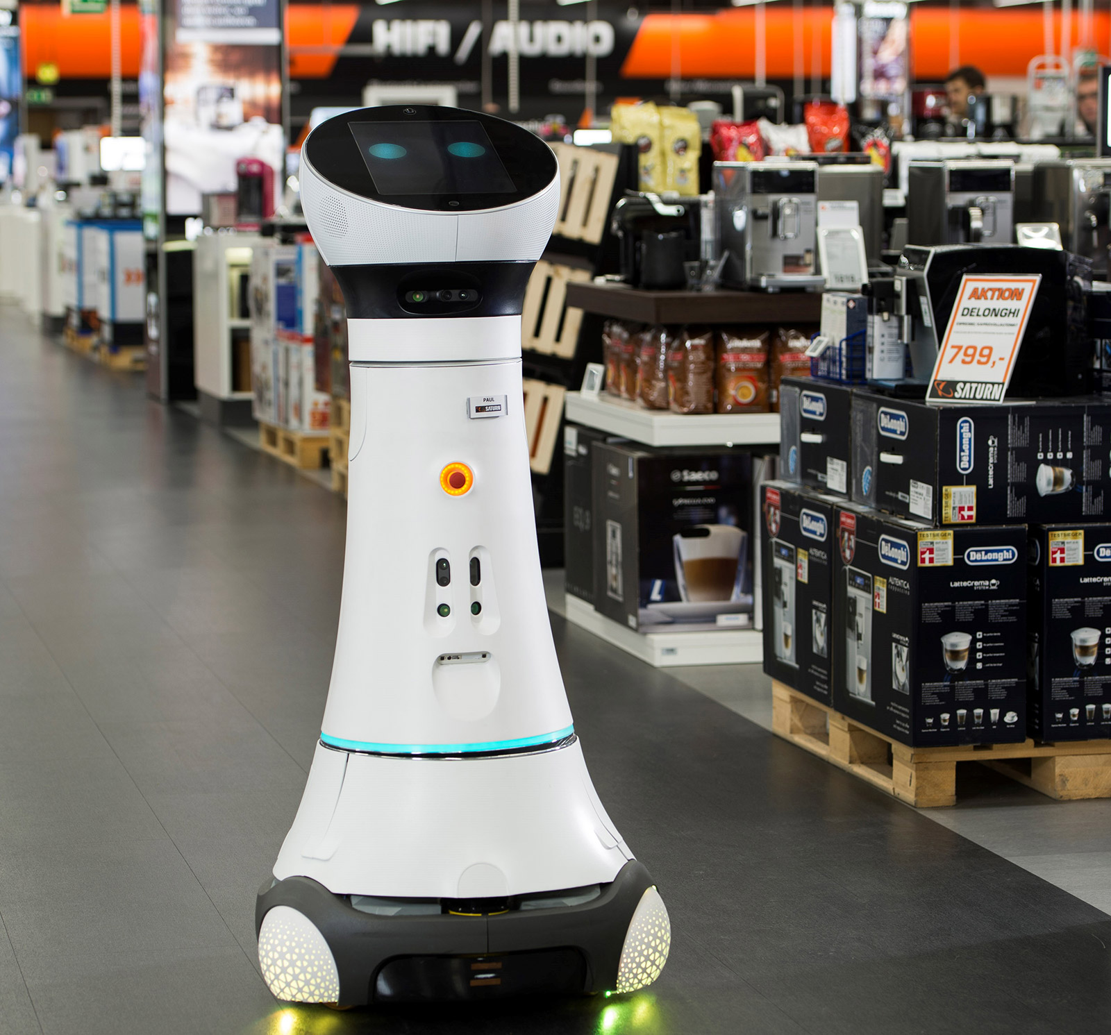Im Saturn-Markt Ingolstadt hat Roboter Paul die Herzen der Kunden bereits erobert. Jetzt wird der Digital-Assistent auch in Berlin (Europacenter) und Hamburg (Mönckebergstraße) jeweils am Eingang postiert. Innerhalb von zwölf Monaten hat er bereits 520 Kilometer Wegstrecke im Ingolstädter Markt und 100.000 Kundenkontakte vorzuweisen.