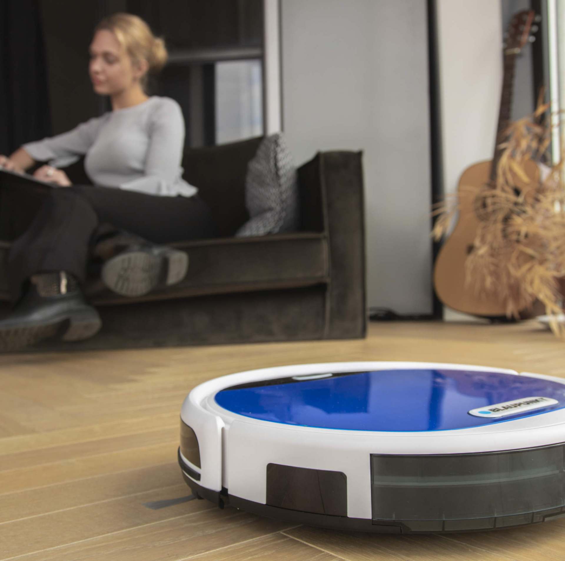 Für Durchblick sorgt der Bluebot Xwin. Der Fensterputzroboter verfügt über einen vibrierenden Reinigungskopf. Mit einem speziellen Wischpad befreit er Scheiben optimal von Flecken und Schmutz. Dabei reinigt er – dank Fugensensor, der das Ende der Scheibe erkennt – Fenster mit und ohne Rahmen sowie Mehrfachverglasung problemlos. Er säubert Fenster im Zick-Zack-Muster von oben nach unten oder von links nach rechts. Aufträge nimmt er auf Knopfdruck oder über die mitgelieferte Fernbedienung entgegen. Ein Sicherheitsseil und ein Notfall-Akku verhindern Abstürze des smarten Fensterputzers.