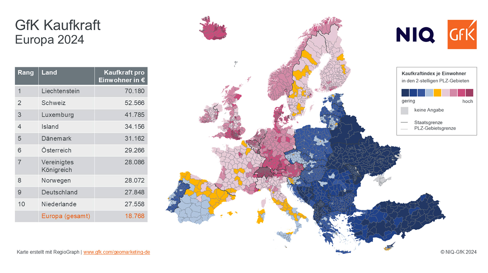 Die durchschnittliche Pro-Kopf-Kaufkraft in Europa beläuft sich 2024 auf 18.768 EUR. Allerdings gibt es zwischen den 42 europäischen Ländern deutliche… Read More