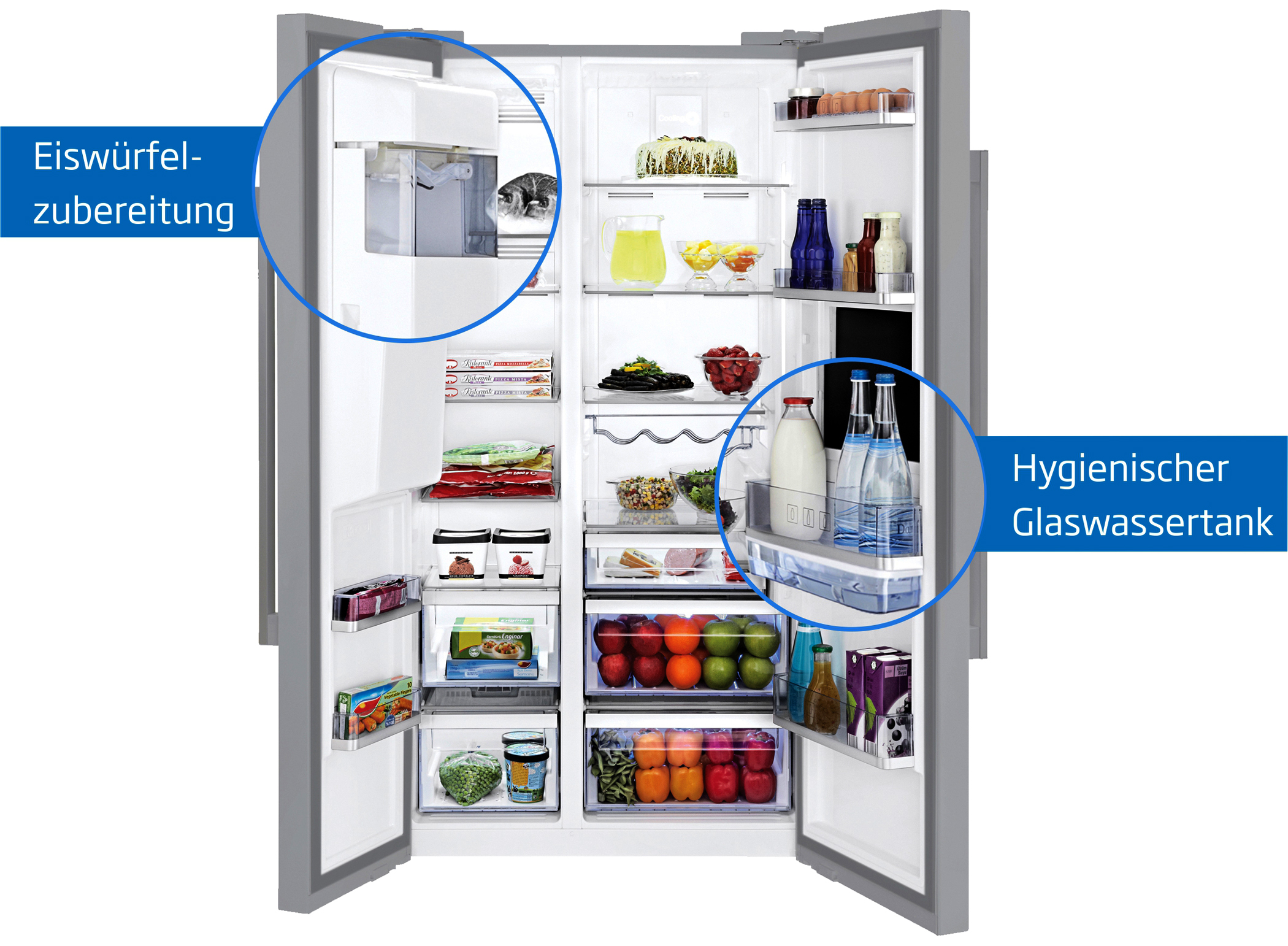 Die Beko Kühl-/Gefrierkombination GN 162531 ZFX ist eine Side-by-Side Kombination mit Glaswassertank. Die Nähe zum Festwasseranschluss ist damit überflüssig. Das… Read More