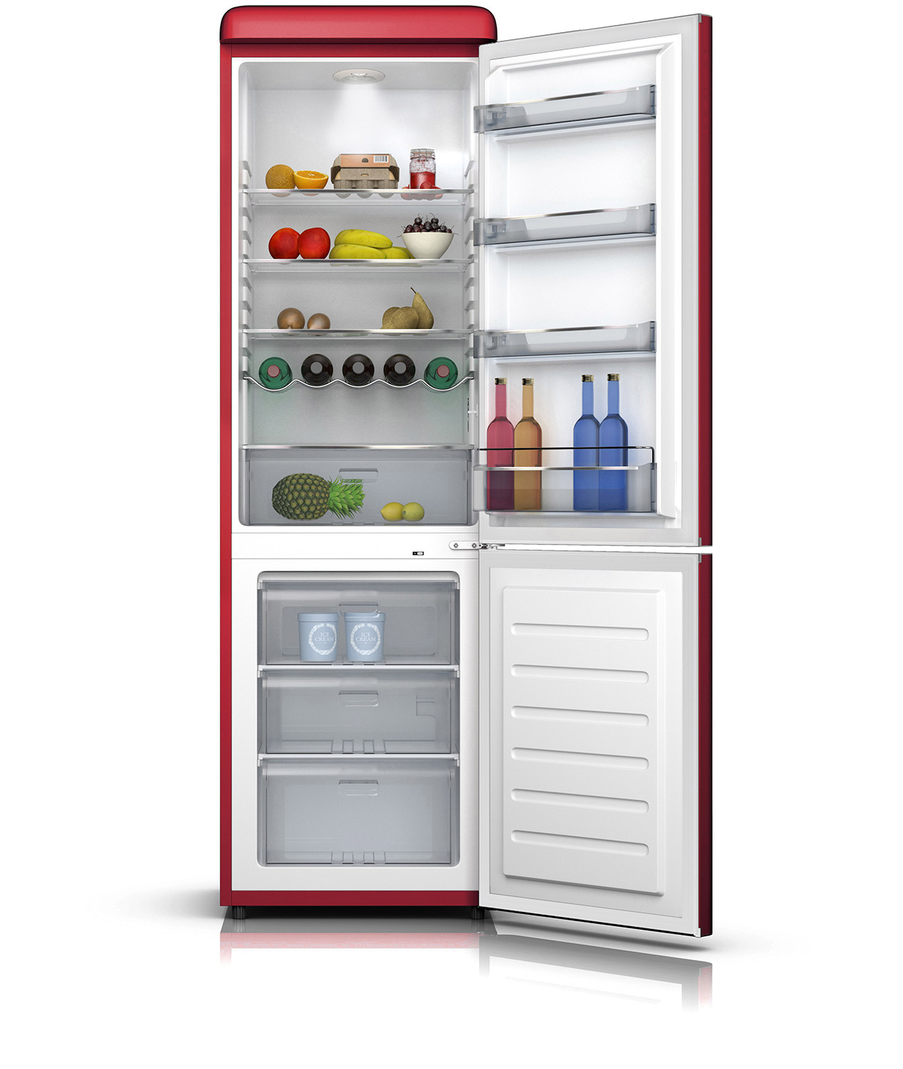 Die Kühl- und Gefrierkombinationen SL 210 und SL 250 beispielsweise vereinen Vintage-Design mit energiesparenden Technik-Features. Die SL 210 verfügt über ein Gesamtvolumen von 206 Litern und ein separates Gefrierteil. Die SL 250 mit bietet ein Gesamtvolumen von 251 Litern. Variable Türbalkone mit Chromleisten, Böden aus Sicherheitsglas sowie LED-Innenraumbeleuchtung runden das Gerät ab. Beide Modelle verfügen über massive Chromgriffe und haben ihr Zuhause in der Energieeffizienzklasse A++.