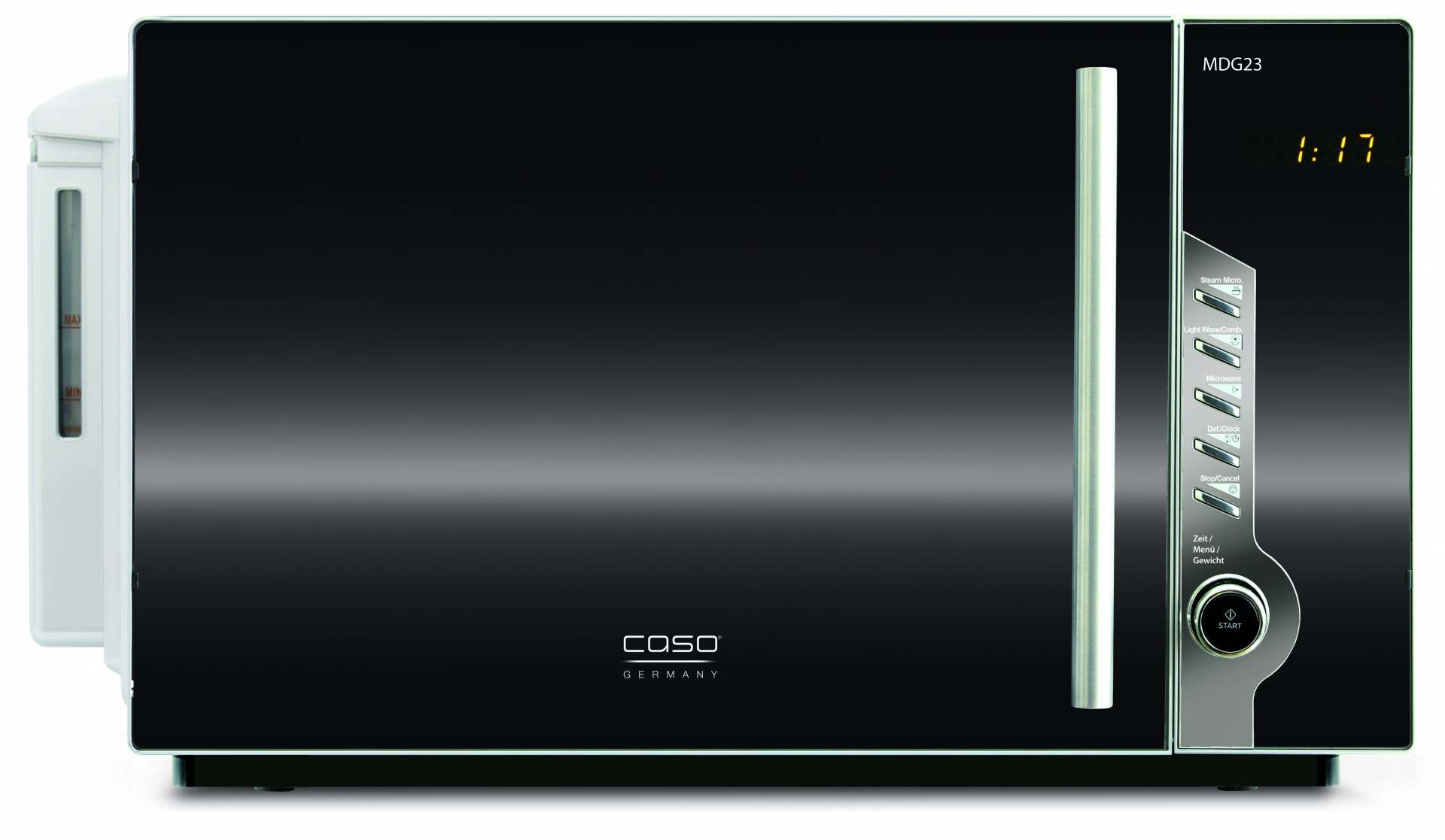 Fünf Mikrowellenleistungsstufen, zwei Kombiprogramme Mikrowelle & Grill sowie 24 Koch-, Grill- und Garprogramme garantieren Flexibilität beim Kochen. Der 95-Minuten-Timer mit Endsignal ermöglicht eine punktgenaue Zubereitung der Speisen. Praktisch ist auch der abnehmbare Wassertank, der über ein akustisches Wassernachfüllsignal verfügt. Von der Verbraucherzeitschrift „Testmagazin“ wurde die Mikrowelle MDG 23 von CASO mit der Note „gut“ bewertet. Die MDG 23 überzeugte die Tester mit einer sehr guten Wärmeverteilung, dem schicken Design und den hervorragenden Gar-Ergebnissen.