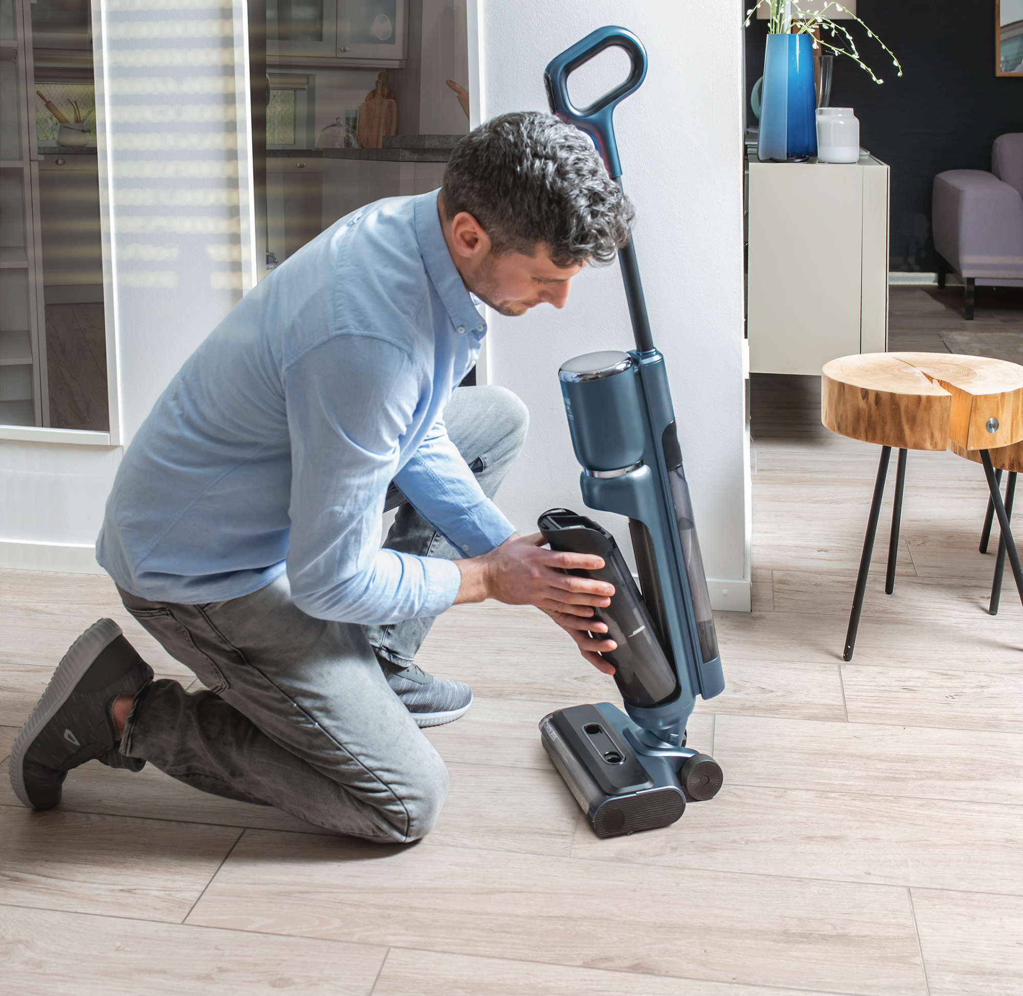 Der Staubsaugermarkt bietet eine große Auswahl an Akku-Saugwischern. Doch worauf genau beruht der große Hype? Der wohl größte Pluspunkt ist die einfache, schnelle und effektive Reinigung, die vor allem kostbare Zeit spart. Der neue THOMAS AQUA FloorCleaner Cordless erfüllt auf Knopfdruck gleich mehrere nützliche Funktionen: Hartböden, insbesondere Parkett und Laminat, bringt der flexible Nassreiniger schnell wieder zum Strahlen, da er in einem einzigen Schritt saugt, feucht wischt und trocknet. Sein Akku ermöglicht im Eco-Modus eine Laufzeit von mehr als einer halben Stunde – genug Zeit, um die gesamte Wohnfläche zuverlässig von Schmutz,
