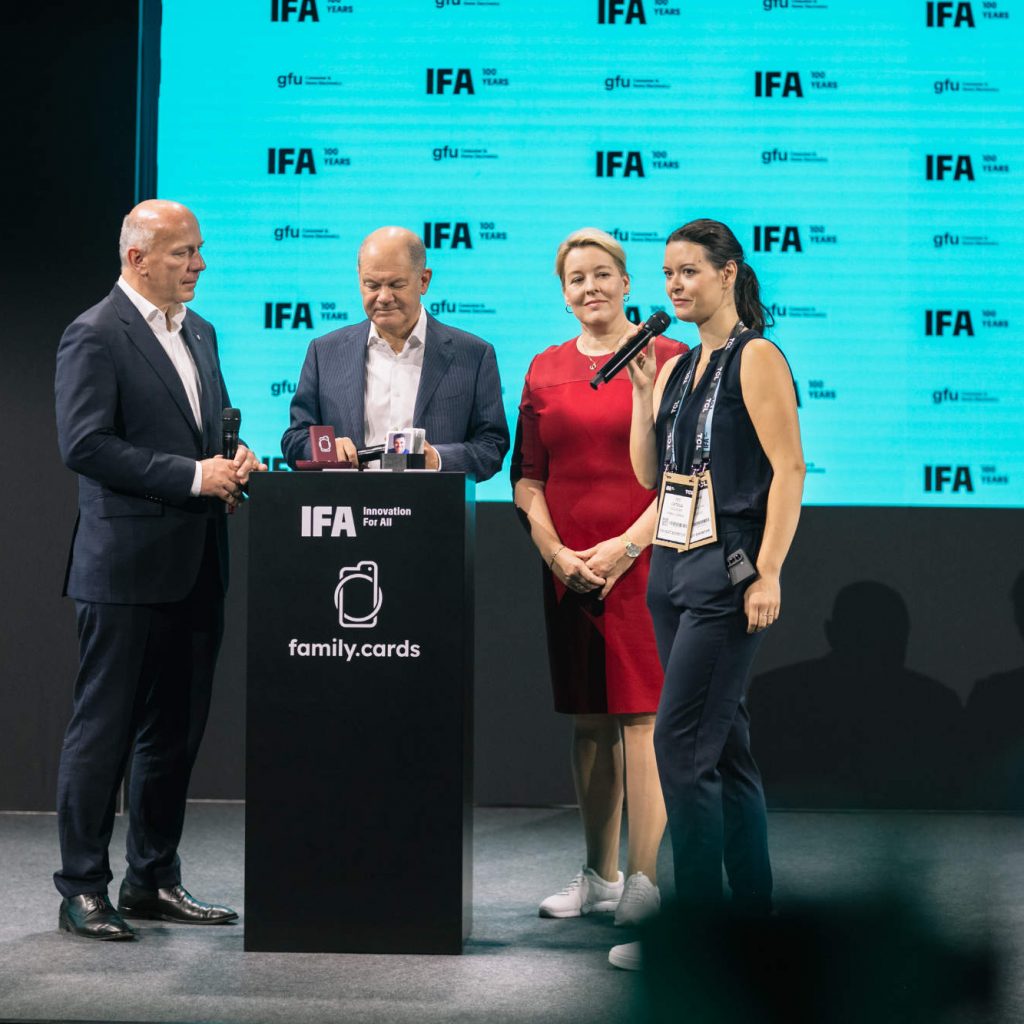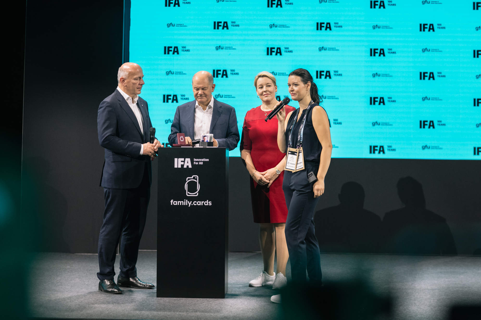 Der Kanzler lobte den Erfolg der IFA als ein „Schaufenster für Innovationen“. Er rief die Technologieindustrie dazu auf, die Sicherheit und damit das Vertrauen in neue Technologien herzustellen, weil das „die Voraussetzungen für eine Technologieoffenheit und auch für eine Technologiebegeisterung sind, die auf der IFA schon seit 100 Jahren zu Hause sind.” Begleitet wurde der Kanzler von einem Medientross sowie u.a. von Franziska Giffey (Senatorin für Wirtschaft, Energie und Betriebe des Landes Berlin) und Berlins Regierendem Oberbürgermeister Kai Wegner, der die Bedeutung der IFA für die Stadt hervorhob: „Die IFA und Berlin sind untrennbar miteinander verbunden.“