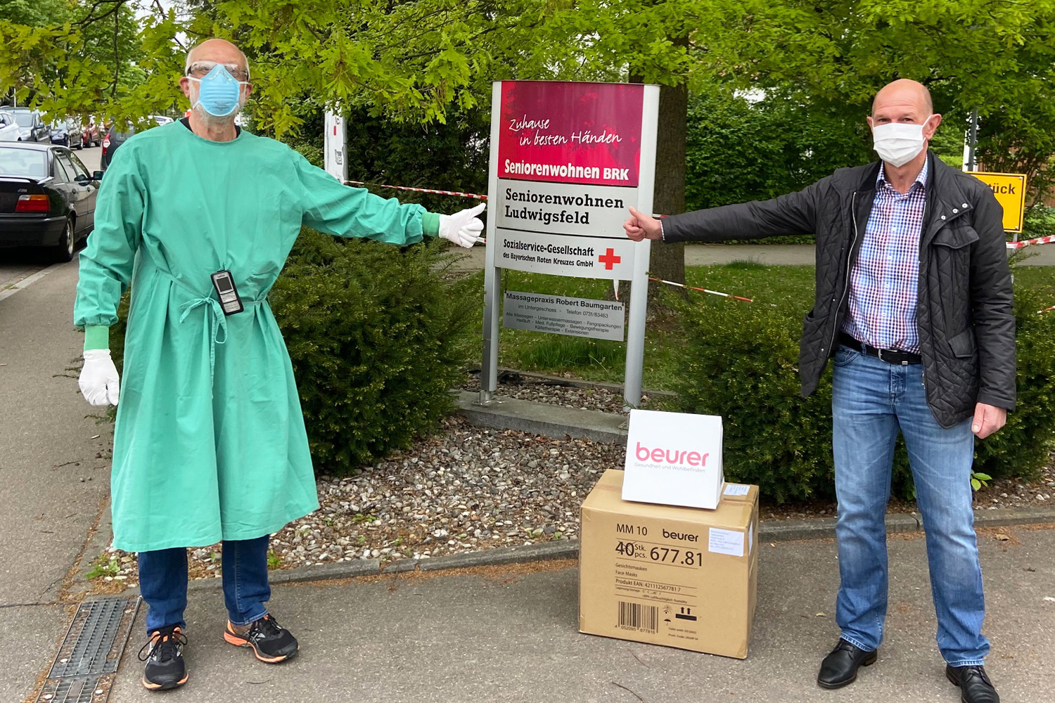 Bei den Schutzmasken handelt es sich um 20.000 Operationsmasken und 5.000 FFP2-Masken, die die Träger vor Tröpfchenauswurf schützen. Sie wurden unter 15 Seniorenheimen in Ulm und Neu-Ulm aufgeteilt. Bühler: „Um der hohen Nachfrage an Schutzausrüstung im Gesundheits- und Pflegebereich künftig besser gerecht werden zu können, werden wir ab sofort medizinische Gesichtsmasken als neue Produktsparte in unserem Sortiment führen und auch selbst herstellen.