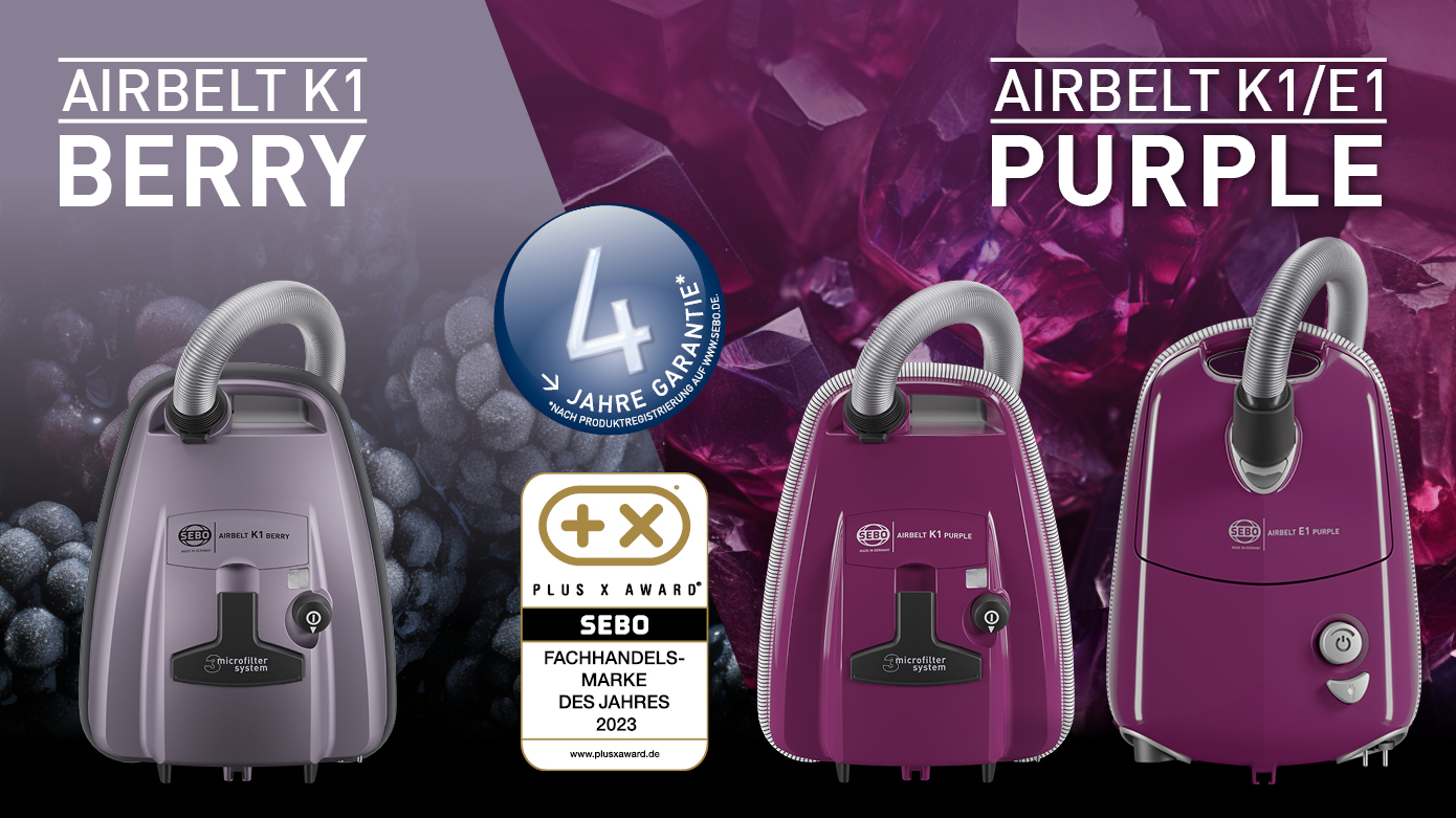 Das purpurviolette Schmuckstück für ein sauberes Zuhause: Der auf der IFA in Berlin präsentierte Sebo Airbelt E1 bringt frische purpurviolette Farbe und Schwung in jedes Zuhause und trumpft mit extra starker Leistung groß auf.