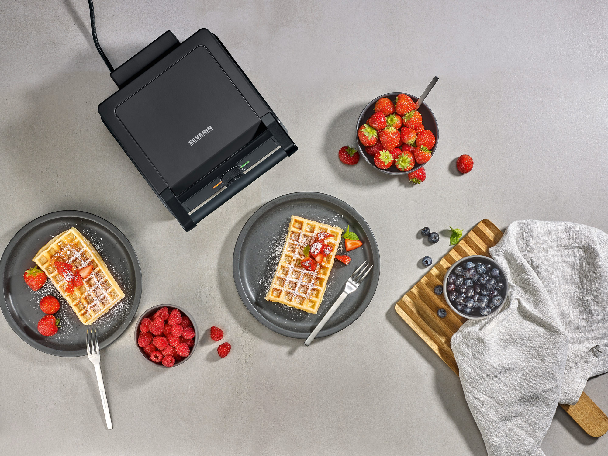 Das WA 2130 Belgische Waffeleisen von Severin: Für fluffige belgische Waffeln in unter drei Minuten und hochwertiger Keramikbeschichtung.