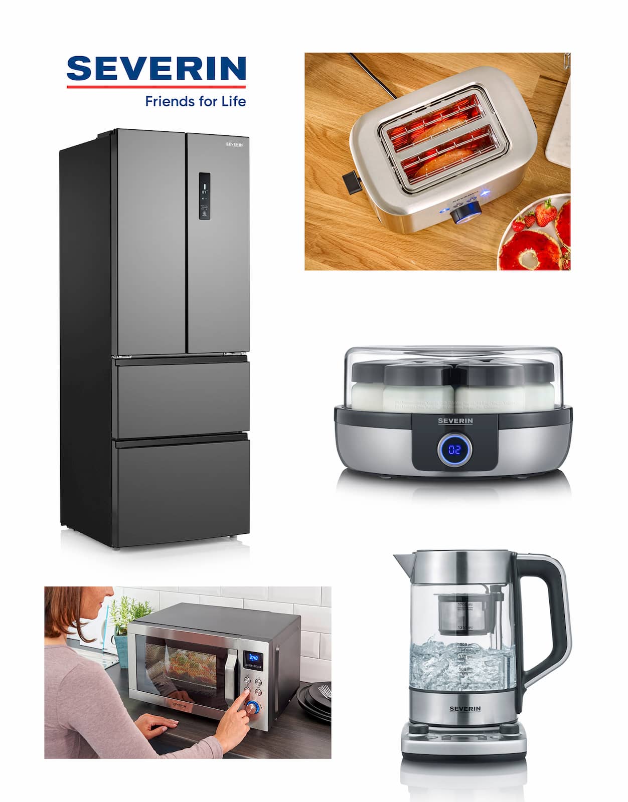 Für den Herbst kündigt Severin eine Vielzahl neuer Produkte aus den Fokusproduktgruppen Kaffee & Frühstück, Kühlen & Gefrieren, Mikrowellen, eBBQ & Funfood sowie Floorcare an, die das neue Markenbild repräsentieren. „Nachdem wir im letzten Jahr Highlight-Produkte insbesondere aus den Bereichen Kaffee und eBBQ mit einer wiedererkennbaren Designsprache präsentiert haben, zeigen wir nun, dass wir dies bis in die Tiefe des Portfolios fortführen“, erklärt Strebl. So wird man zum Beispiel Toaster und Joghurtmaker auf den Markt bringen, die sowohl in puncto Design als auch mit innovativen Features überzeugen sollen.
