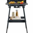 Für eine geringe Rauch- und Geruchsentwicklung sorgt die mit Wasser befüllbare Grillwanne. Die einfache Bedienung ermöglicht der Thermostat mit großem Drehregler und klarer Skalierung. Zur Sicherheit schaltet das Heizelement bei Entnahme automatisch ab und der Sicherheits-Mikroschalter sorgt für zusätzliche Sicherheit.