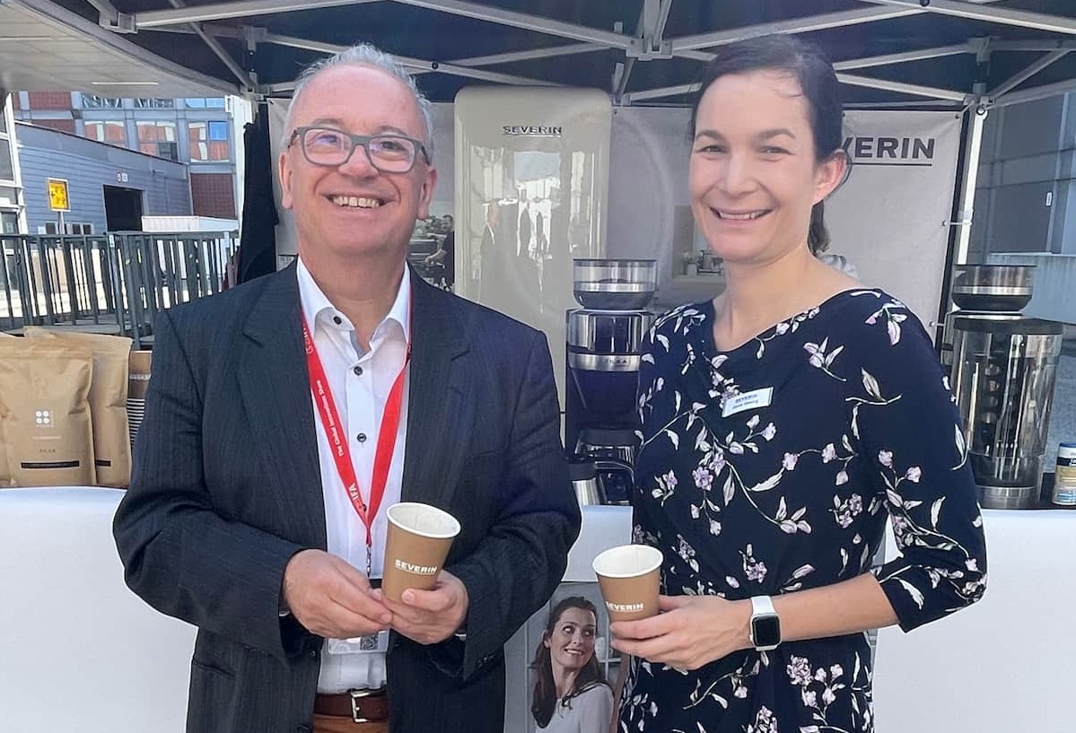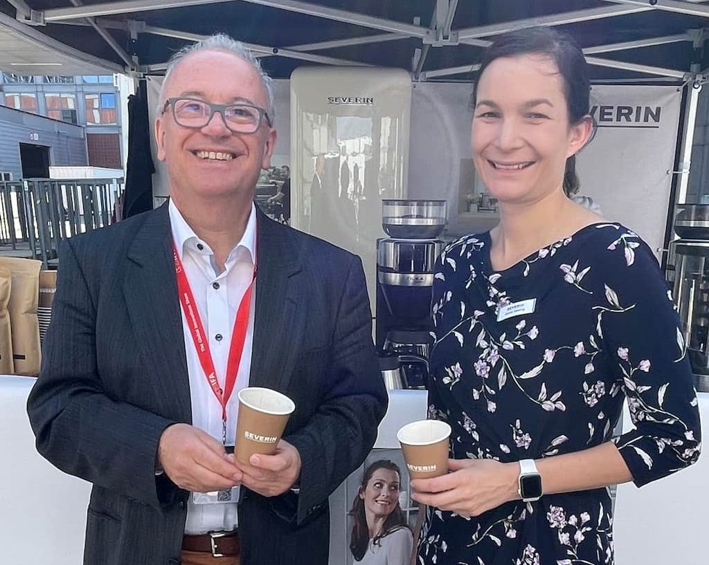 Severin hat sich in jüngerer Zukunft – endlich! – einen exzellenten Ruf als Hersteller zukunftsweisender Kaffeemaschinen erarbeitet. Passenderweise empfängt das Unternehmen in Berlin seine Besucherinnen und Besucher im stylisch-gemütlichen Coffee House-Ambiente mit klassischen und kreativen „Filka“-Kaffeespezialitäten. Beim Get-Together stellt das Unternehmen u.a. die Weiterentwicklung der „Filka“ vor.