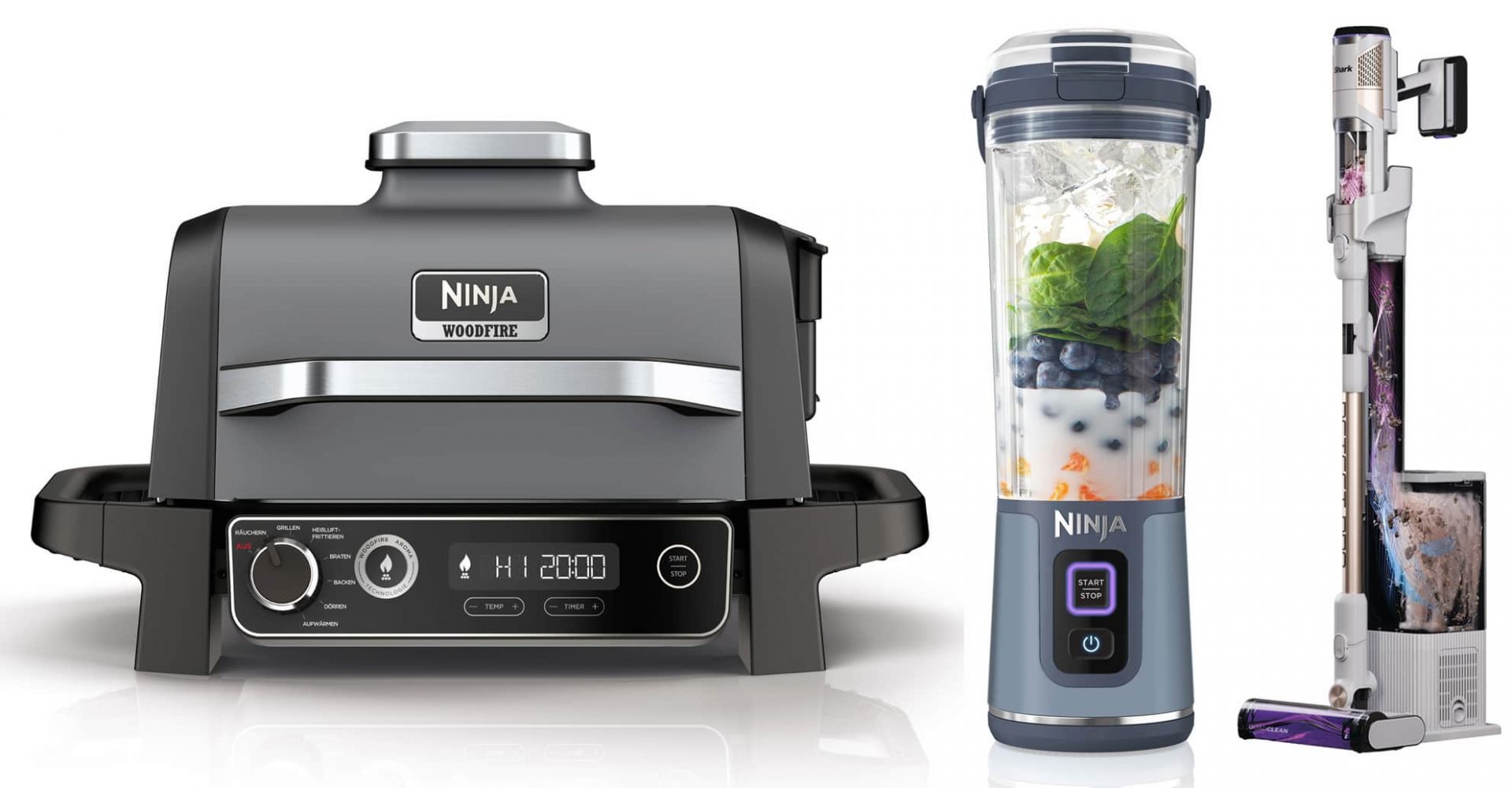 SharkNinja präsentierte auf der IFA drei Ninja-Produkte: den ersten kabellosen Stabmixer Ninja Blast, den Ninja Woodfire Outdoor-Ofen und einen, größeren Ninja Woodfire Electric BBQ Grill.