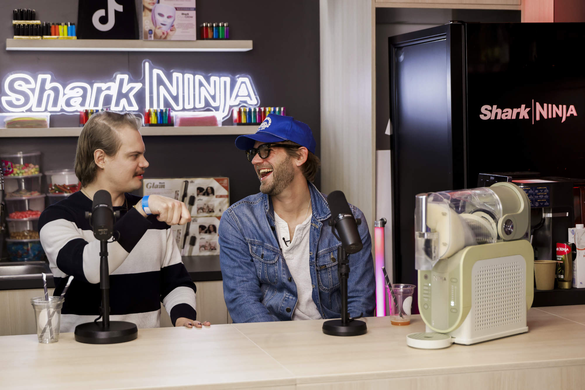 Schauspieler Wilson Gonzalez Ochsenknecht (l.) fungierte als Gastgeber in dem SharkNInja-Späti, hier mit Ben Dahlhaus. Foto: Isa Foltin/SharkNinja via Getty Images