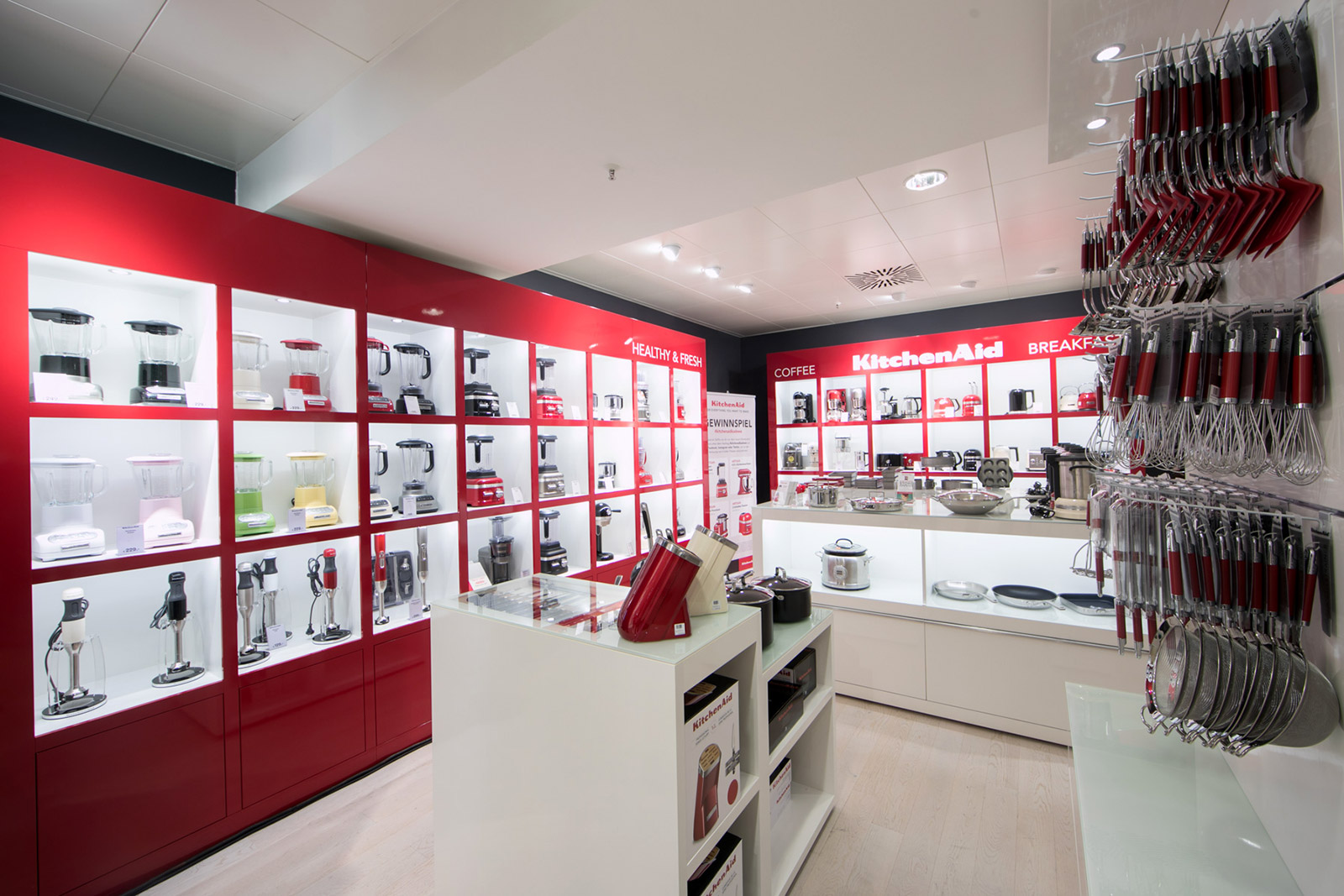 Da schlägt das Herz vieler Kochfans schneller: Die Küchenhelfer von KitchenAid gibt es ab sofort in einem „Shop-in-Shop“ in der vierten Etage des KaDeWe in Berlin zu sehen und zu erwerben. Nach dem Experience Store in London ist die „Filiale“ in Berlin mit 100 Quadratmetern Verkaufsfläche der zweitgrößte KitchenAid Store Europas.