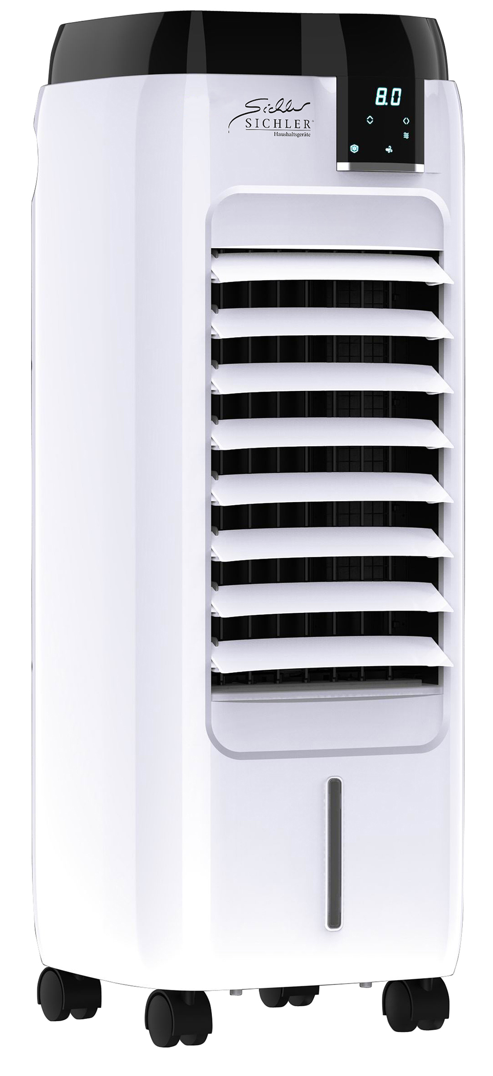 Der Sichler Verdunstungs-Luftkühler LW-500 sorgt für angenehm kühle Luft bei geringem Stromverbrauch. Mit Wabenfilter entsteht eine angenehme Verdunstungskälte bei gleichzeitig angenehmer Luftfeuchtigkeit. Das Wasser im Tank kühlt zudem selbstständig auf frische 8 °C.
