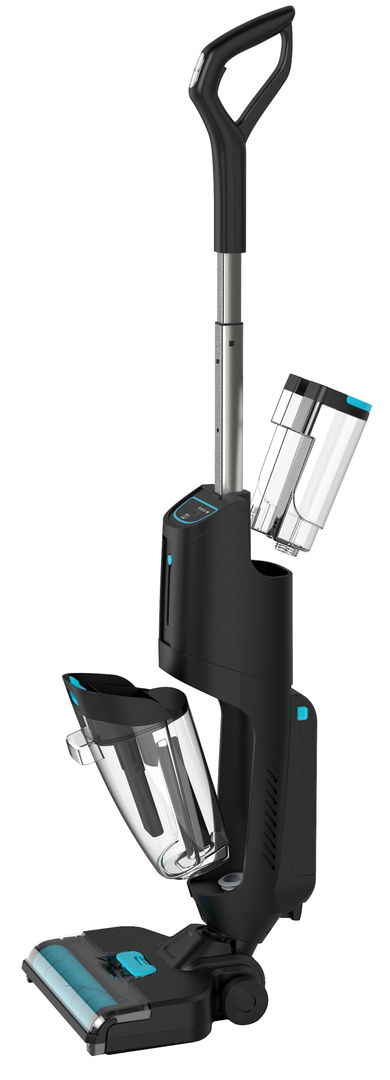 - Saugt und wischt gleichzeitig alle Hartböden, z.B. versiegelte Holzböden, Fliesen, Kacheln, Vinyl-, Stein- und Marmorböden